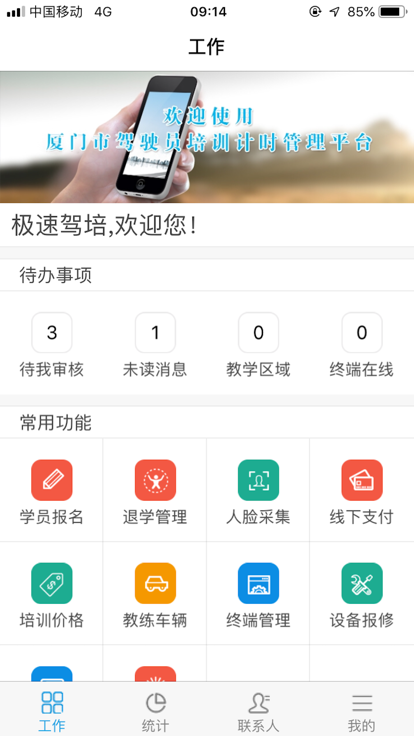 极速驾培驾校版,是福建兴中正信息科技有限公司为厦门市驾驶培训学校打造的一个专业办公平台,旨在帮助用户更方便的日常办公,摆脱电脑的束缚,随时随地及时有效的处理工作问题,提升办公效率。 在极速驾培驾校版上你可以做什么: 1、快捷办理学员报名和退学申请 2、快捷提交学员学时供管理部门审核,查看学员教学日志; 3、处理学员计时学车线下支付 4、设置查看培训价格; 5、查看学员、教练员、考核员、安全员以及教学车辆和教学区域信息; 6、查看机构或者教练的评价信息,处理投诉信息; 7、通过统计图便捷查看驾校的报名情况