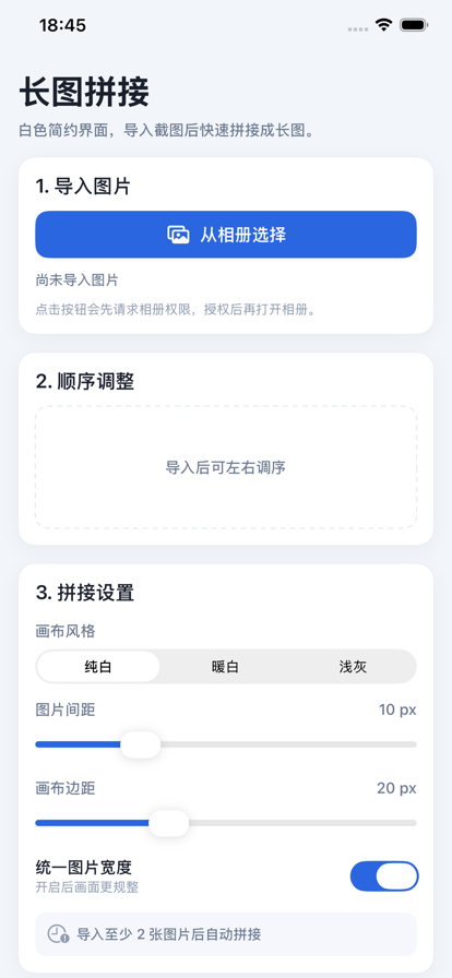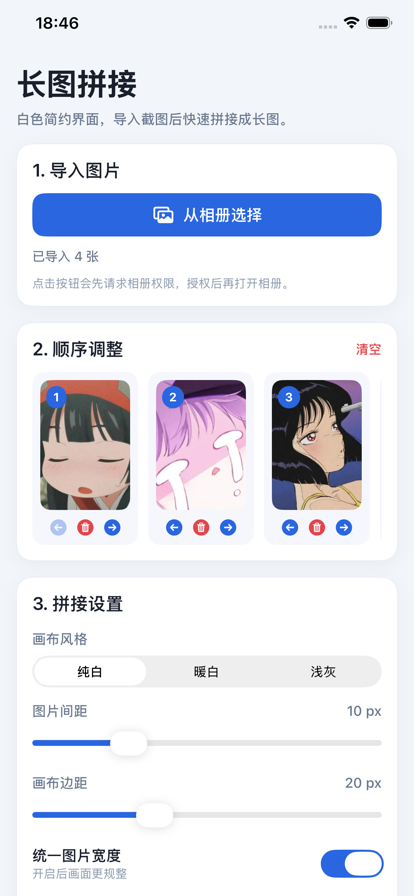 超超超好用的长图拼接软件,原图保存,不降低清晰度,让你操作更方便,简洁干净的页面,快来使用吧。 主要功能: - 无缝拼接:长图拼接自动合成 - 台词拼接:图文台词精准拼接 - 对话拼接:聊天记录一键合成 - 滚动截图:网页截屏长图拼接 - 编辑调整:拖动调整拼接顺序 - 保存分享:一键快速保存分享 隐私政策:https://www.freeprivacypolicy.com/live/5cbf0825-fa80-48df-9f33-94d069d218ff 服务协议:https://www.freeprivacypolicy.com/live/b608fe67-bdac-479b-a207-f8b2c61cd4a2 关于订阅说明 App Store官方订阅功能为自动续费订阅,iTunes Account进行确认支付。用户需手动在iTunes/Apple ID设置管理中管理自动续订功能,如果订阅期结束前的24小时内未关闭自动续订功能,订阅周期将会自动延续。如果您想取消订阅,请在您的iOS设备上前往“设置”-->选择“iTunes Store与App Store”-->点击“Apple ID”,接下来选择“查看AppleID”,进入“帐户设置” ,点击“订阅”-->“管理”,并选择对应的订阅,之后便可取消订阅。