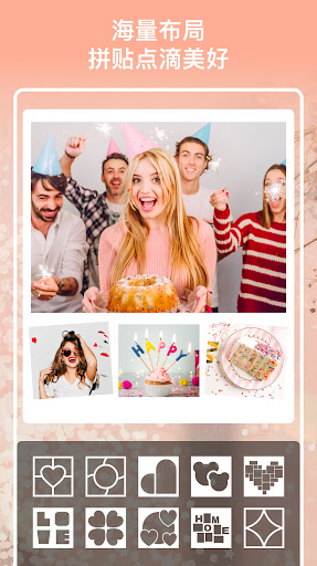 新晋时尚美图工具,集拼图、美化等功能于一体,丰富的拼图模板,超多创意软萌贴纸,海报般的出图效果。<br><br>功能介绍:<br>【拼图】<br>1. 海量的时尚拼图模板,一键生成海报,打造属于你的照片墙。<br>2. 自由拼图,选择喜欢的背景图,自由添加贴纸,任意拖放图片位置,你的照片你作主。<br>3. 超大容量(1000张)的多选拼图,满足各种个性化拼图需求。<br><br>【拼接】<br>拼长图功能,支持上下拼接(垂直方向)和左右拼接(水平方向)<br><br>【图片编辑】<br>图片加贴纸、文字,调整亮度、透明度、对比度,在线提升颜值和气质
