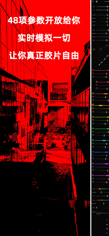 「无限胶片」「无限胶片Mono」和「无限胶片Cine」 深受众多摄影师喜爱的专业「胶片」随身机。 主打前端简洁全屏的拍摄界面+单手操作+后端几十项专业参数加持的无限量胶片。 1 实时模拟一切! 首创的小型低功耗*但非常强大的专业实时图像引擎, 你将有48个实时的可调整参数 模拟一切胶片、相机和大师们的色彩! 2 无限的胶片! 无限创造和分享自己的胶片! 无限的得到其他摄友的胶片! 3 不卡顿、低延迟,全尺寸 瞬间拍到铺满5K屏幕的全尺寸(3024X4032)胶片照片。 4 新手拍大片! 原带几十款深度模拟的专业胶片滤镜,随手拍大片,随便修改。 5 一秒分享胶片 一键二维码分发和引入胶卷 一秒完成。 6 单手操作的专业快拍相机, 深受专业摄影师喜爱的随身机。 是你的好玩具,但不仅仅是玩具。 *在参加实验的手机上五分钟测试,发热与原相机基本持平。 *视频预览、截屏显示内容可能因版本更新而略有改变。 *颜色参数数量及原厂胶卷数量因版本升级可能会有调整。