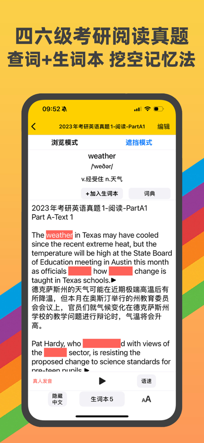 背点单词,专注于打造高效愉悦的背单词体验。 【英语思维背单词 记忆更牢固】 1、 通过情景图片,例句,视频等方式记忆单词,建立单词-情景直接反应的英语思维 2、 为单词挑选喜爱的图片,打造个人专属记忆方式 3、 根据单词掌握程度智能推荐阅读文章,在文章中回想单词,提升单词回想能力的同时,二次强化记忆 4、 支持听写、阅读、拼写等多种复习方式,学习不乏味。平板电脑支持手写笔直接拼写单词哦! 【海量词书 选择更丰富】 1、 热门领域全覆盖:中考/高考/专升本/四级/六级/考研/雅思/托福/GRE/专四/专八/考研/考博…… 2、 单词配套词根,助记,衍生词等多种学习内容,全方位解析单词 【智能记忆算法 学习更高效】 1、 疑难单词重点复习,熟知单词减少频率,高效完成词书 2、 简洁的学习内容与界面设计,减少记忆负担 【图表记录数据 进步看得见】 1、 以图表的方式记录下您每天的进步,进步情况一目了然 2、 支持每日打卡自评,记录您的蜕变