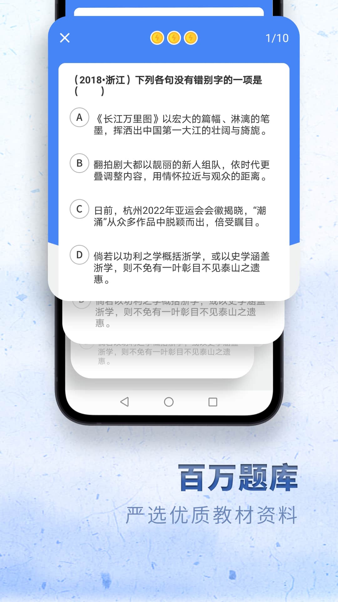 1. 海量真题模拟与随机真题测试:这款APP提供了大量的普通话真题模拟,以便您在正式考试前进行练习。此外,随机抽取的真题测试也让学习过程更富挑战性,帮助您在各种不同的场景下熟悉考试内容。 <br> <br>2. 预测考试等级:根据您的答题情况预测可能的考试等级。这不仅可以让你了解自己的学习进度,还可以针对薄弱环节进行有针对性的学习,从而提高考试成绩。 <br> <br>3. 针对性学习:对于初学者,APP提供了单音节、多音节、短文朗读、命题说话等功能,帮助您逐步提升普通话水平。这些功能的设计,考虑到了普通话学习的不同阶段,使得学习过程更具系统性和针对性。 <br> <br>4. 声韵调学习:APP包含了21个声母、39个韵母和4种声调的学习内容,这有助于您从基础开始,逐步掌握普通话的发音技巧。 <br> <br>5. 强化反复训练:针对常错、易错的字词,APP提供了强化训练,帮助您反复练习,加深记忆,从而在实际使用中减少错误。