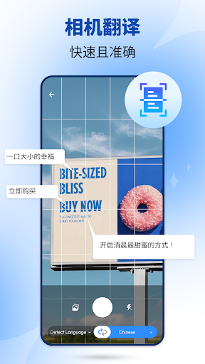 将相机变成翻译器。<br><br>只需拍照并获得翻译。翻译后的文字将直接呈现在照片的原始文字上。<br><br>√自动语言检测<br>√无限的图片翻译<br>√最先进的 OCR 技术<br>√支持 100 多种语言<br>√翻译文本会直接呈现在照片的原始文本上<br><br><br>支持以下语言之间的翻译:<br>南非荷兰语,阿尔巴尼亚语,阿姆哈拉语,阿拉伯语,亚美尼亚语,阿塞拜疆语,巴什基尔语,巴斯克语,白俄罗斯语,孟加拉语,波斯尼亚语,保加利亚语,加泰罗尼亚语,宿务语,齐切瓦语,中文(广东话、普通话、台湾),科西嘉语,克罗地亚语,捷克语,丹麦语,荷兰语(荷兰),英语(澳大利亚),英语(加拿大),英语(印度),英语(英国),英语(美国),世界语,爱沙尼亚语,菲律宾语,芬兰语,法语,法语(加拿大),弗里斯兰语,加利西亚语,格鲁吉亚语,德语,希腊语,古吉拉特语,海地克里奥尔语,豪萨语,希伯来语,印地语,苗语,匈牙利语,冰岛语,伊博语,印度尼西亚语,爱尔兰语,意大利语,日语,爪哇语,卡纳达语,哈萨克语,高棉语,韩语,库尔德语(北库尔德语),吉尔吉斯斯坦,老挝语,拉丁语,拉脱维亚语,立陶宛语,卢森堡语,马其顿语,马达加斯加语,马来语,马拉雅拉姆语,马耳他语,毛利语,马拉地语,摩尔多瓦语,蒙古语,缅甸语,尼泊尔语,挪威语,普什图语,波斯语,波兰语,葡萄牙语,葡萄牙语(巴西),旁遮普语,克雷塔罗奥托米语,罗马尼亚语,俄语,萨摩亚语,苏格兰盖尔语,塞尔维亚语,塞索托语,休纳语,信德语,僧伽罗语,斯洛伐克语,斯洛文尼亚语,索马里语,西班牙语,西班牙语(墨西哥),巽他语,斯瓦希里语,瑞典语,塔吉克语,泰米尔语,塔塔尔语,泰卢固语,泰语,土耳其语,乌德穆尔特语,乌克兰语,乌尔都语,乌兹别克语,越南语,威尔士语,科萨语,意第绪语,约鲁巴语,尤加敦玛雅语 ,祖鲁语。