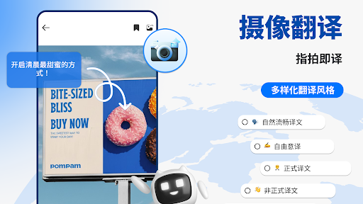 使用我们的照片翻译应用程序将您的手机相机变成强大的翻译工具。只需拍照即可获得即时翻译,翻译后的文本将显示在图像中原始文本的正上方。