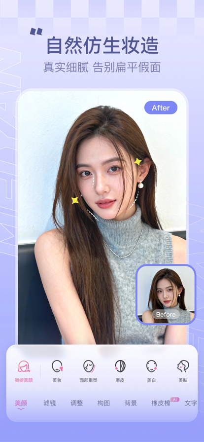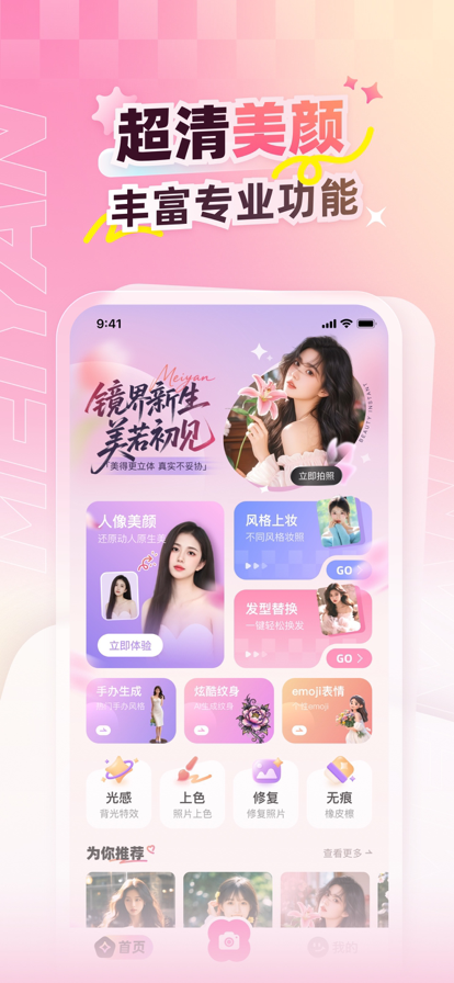 美容相机-AI美颜特效 —— 让每一张照片都成为艺术杰作 专为追求精致美感与创意表达的你量身打造!《美容相机-AI美颜特效》以尖端人工智能技术为核心,集图片编辑、智能美化、艺术创作于一体,无论是日常自拍、风景记录,还是创意设计,都能一键解锁惊艳效果,让你的每一张照片都独具风格。 核心功能,玩转图片魔法 *精致美颜与滤镜:AI 智能识别面部轮廓,自然磨皮、细腻瘦脸,保留真实质感;涵盖复古、清新、电影感等数十种滤镜,一键切换氛围,让照片自带高级感。 *图片编辑全能工具箱:裁剪、旋转、调色等基础功能一应俱全,更支持局部细节修饰,轻松搞定图片瑕疵,让画面更精致。 *图片画质修复:模糊照片一键变清晰,老照片修复、去除噪点、智能除雾,还原画面细节,拯救废片神器。 *智能无痕处理:AI 精准识别并去除水印、路人、杂物,不留痕迹,让画面干净纯粹,专注主体表达。 *智能写真与虚拟换装:上传照片即可生成杂志级写真,妆容、姿态自然融合;虚拟换装功能覆盖多种风格,日常、通勤、礼服随心换,轻松试穿不费力。 *智能扩图:突破画面边界,AI 自动补全边缘场景,横版变竖版、构图调整更灵活,适配不同展示场景。 图片艺术生成:一键将照片转化为漫画、油画、素描等艺术风格,更支持自定义创作参数,让普通照片秒变艺术大作,释放你的创意潜能。 自动续费服务声明 付款:用户确认购买后,费用将从 iTunes 账户中扣除; 取消续订:如需取消,需在当前订阅周期到期前 24 小时,通过 iTunes/Apple ID 设置管理关闭自动续费,关闭后不再扣费; 续费:苹果 iTunes 账户将在到期前 24 小时内自动扣费,扣费成功后订阅周期顺延一个周期。 隐私政策:https://docs.qq.com/doc/p/9ddc1be3dc4ecd422c429af2938aca9e72c4bc2c 使用条款:https://docs.qq.com/doc/p/5ed29cb6c5bd23b68a0cb8354139340cf6ff4c22 用 AI 赋能创意,让每一张照片都超越期待 ——《美容相机-AI美颜特效》,你的专属智能美学助手。