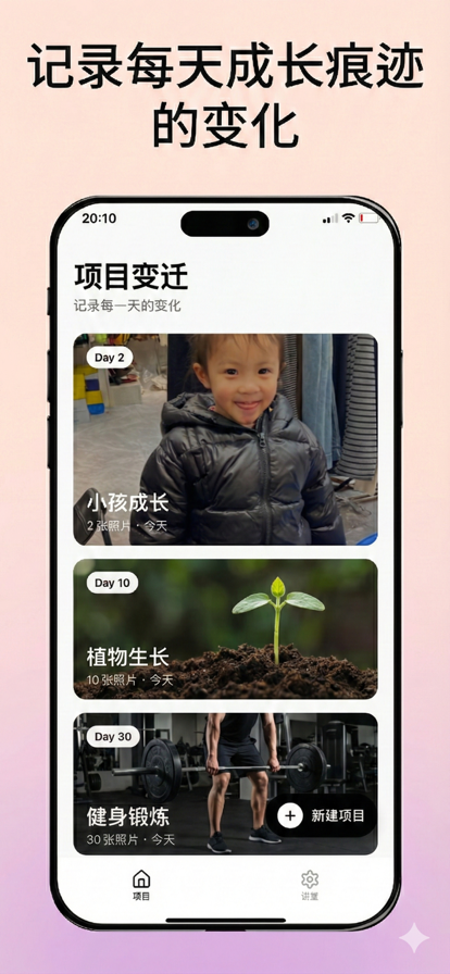 留痕:对齐拍照,记录真实变化。 健身体型、装修/手作进度、孩子宠物成长、植物生长——每天一张,一眼看见进步。 照片仅保存在你的设备中:不上传、不社交。 你可以用留痕记录这些变化 • 健身 / 体型变化:同角度进度照,看到自己一点点变好 • 装修 / 手作项目:工程推进、细节完成度,按天留下证据 • 孩子 / 宠物成长:从某一天开始,时间会给你答案 • 植物生长:发芽、长叶、开花,把变化串成一条线 对齐拍摄,记录真实变化 打开相机后,上一张照片会半透明叠加在取景画面里。 你只要对齐位置,按下快门—— 每天一张,就足够。 时间轴浏览,一眼看见进度 所有照片按时间自动排列。 变化不需要解释,它会在时间里自然发生。 回看时,你看到的不只是照片,而是你做过的事、走过的路。 只属于你的记录 • 仅保存在你的设备中 • 不上传、不社交 没有打扰,没有比较,只为你自己留下痕迹。