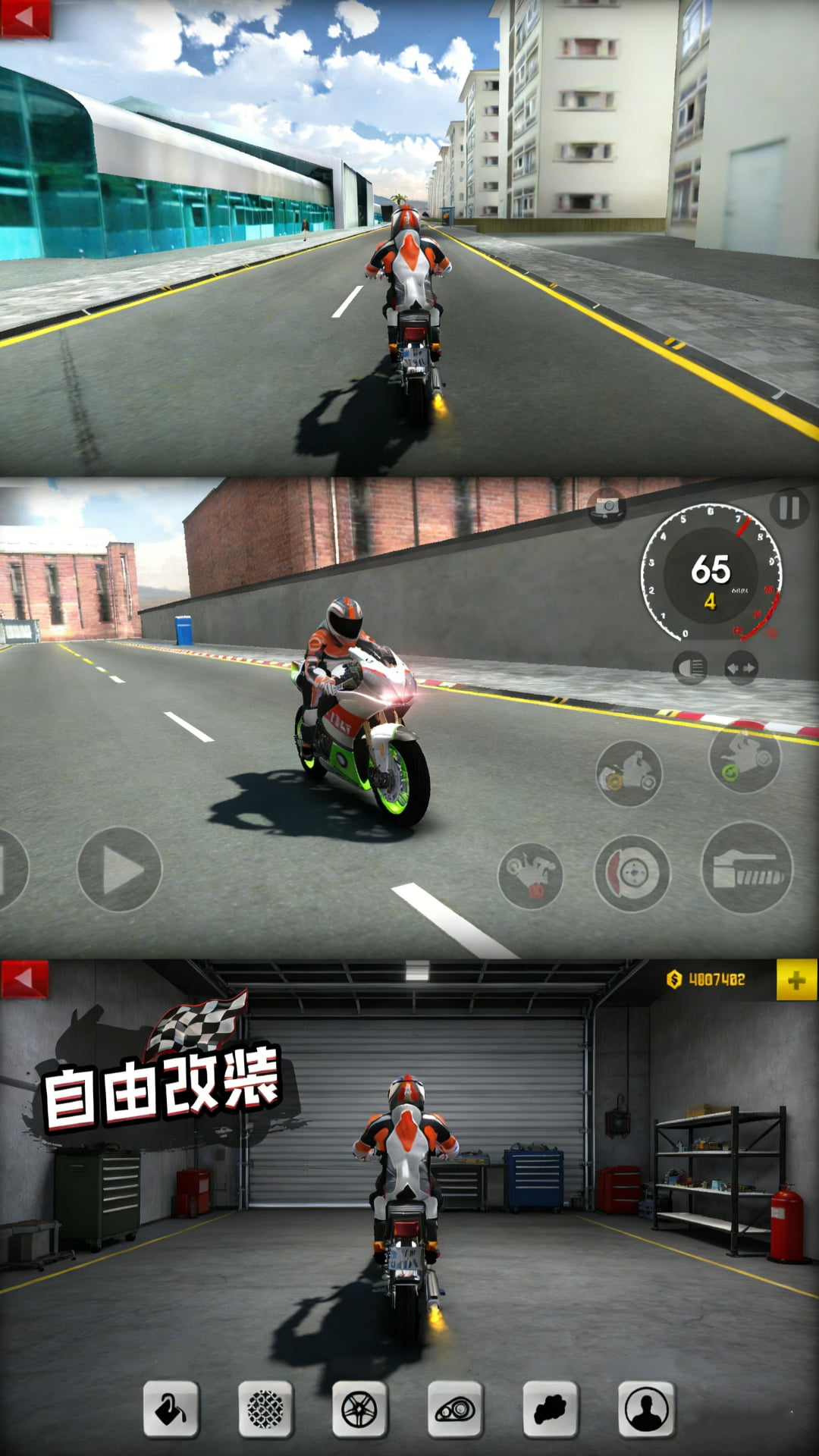 这是一款,真实写实的3D赛车游戏,精美的画质,丰富的功能,给您全新的竞速体验! 游戏四大模式正式上线!职业赛、无尽模式、计时赛及娱乐赛等你挑战!比赛会随着进程加难!不要担心数十款摩托免费解锁,还可以进行升级改装!能量、操控、刹车全方位提升赛车属性! 全新时装系统上线,打扮你的爱车,各种颜色喷漆、贴纸任你搭配,更有炫酷的赛车手套等你领取! 特点: 1.优化游戏玩法内容, 2.数种赛车,登录即可领取 3.全新上线任务系统,完成任务即可获得大量奖励