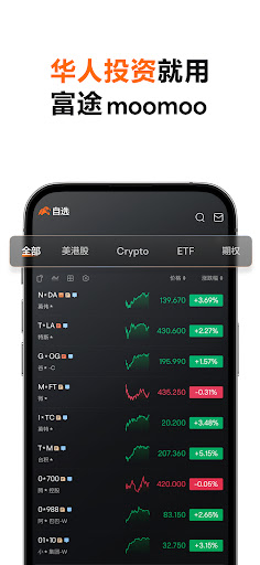 富途moomoo是享誉全球的数字化金融投资交易平台,为全球多国客户提供全面的股票、ETF、期权等在内的交易与行情服务,包括实时深度行情、全方位技术分析和庞大活跃的投资互动社群平台等,让您实时获取更多新闻资讯、社区交流、高质量观点,做出更好的投资选择。<br> <br> - 富途:亚洲市值最大的互联网券商,作为香港No.1*科技券商“富途牛牛”的姐妹品牌,moomoo同时也是新加坡下载量No.1*的交易App,致力于为您的投资交易体验提供强大保障。<br> - 享受0佣金交易*、免费Level 2深度美股股票行情报价以及多种强大的投资分析工具。<br> - 与全球2,600万用户共同体验富途moomoo投资互动社群。发掘实盘社区,大牛云集,共享投资心得。<br> - 24小时中文、英文在线客服,可随时解答您的问题。<br> <br> 【快捷开户,一个帐户多终端交易全球,把握更多潜在投资机遇】<br> - moomoo提供零交易佣金和极低的平台费用,让您通过一个账户便可随时随地使用手机、电脑或平板投资全球主要市场,节省更多投资成本。<br> - moomoo支持简便快捷开户,无任何账户费用,开户流程简单且迅速。<br> <br> 【强大又全面的交易分析工具,支持更长交易时段,做您最佳智能投资伙伴】<br> - 免费Level 2 实时行情报价,报价高达60档,让您及时掌握最新价格动态,判断最佳潜在投资时机。<br> - 一眼便可解析大市和各板块的热力图,多种股票、基金与期权榜单排行榜,超过100种筛选条件的选股器,海量公司数据,易读的可视化财务及经营数据图表等等海量数据分析工具,助您更快更深入了解每只股票。<br> - 财报日历与财报站,首先为您呈现最重要、最新的股票财报指标和大事报告。<br> - 超过63种交易技术指标,搭配38种多端同步的智能画线工具,让技术分析更直观。<br> - 多种便捷买卖订单类型,为您提供更快速有效、更可靠的交易体验。<br> - 交易时段长达16小时,美股盘前盘后不受限。<br> <br> 【绝佳的中英文资讯与客服体验,语言不再是问题】<br> - 24x7滚动刷新的中英文财经新闻资讯,支持一键翻译,紧贴各大市场走向及事件。<br> - 专业中文客服在交易日24小时在线解答,无需等待。<br> <br> 【全球最大的互动投资社区之一,让您的投资不再孤单】<br> - 与moomoo全球投资者实时分享你在投资方面的独特洞见,在线分享收益和投资笔记,借鉴投资优异者的投资心得和投资策略。<br> - 从社区中获取更多投资动向和最新消息,在聊天室和社区中与投资高手交流实战,关注更多成功投资者并可直接进行交流。<br> - 即时了解当下投资动向,了解市场目前情绪和最新最热的投资产品。<br> <br> 【合规资质,知名机构青睐】<br> - moomoo为纳斯达克上市公司富途控股旗下券商品牌,富途控股获得腾讯控股、经纬创投、红杉资本战略投资,纳斯达克上市,股票代码FUTU。<br> - 富途控股旗下券商持有多地金融牌照。<br> - 顶尖技术高度保护个人隐私。<br> 投资有风险,需小心谨慎。<br><br>Moomoo SG 持有资本市场服务牌照持牌人(自2020年10月1日起)以及主要支付机构牌照持牌人(自2024年2月1日起)。投资资本市场产品涉及风险,完整免责声明请参阅:www.moomoo.com/sg/support/topic5_510。本广告未经新加坡金融管理局审核。<br><br>*0 佣金交易仅适用于通过 Moomoo Financial Inc. 在美国市场进行交易的美国居民。请注意本平台可能会收取其他费用。 欲了解更多信息,请访问 moomoo.com/us/pricing。Moomoo SG 0佣金交易条款条件和其他费用适用,请访问https://www.moomoo.com/sg/support/topic5_365. <br>Moomoo Financial Inc., Moomoo Technologies Inc., 深圳市富途网络科技有限公司,富途证券国际(香港)有限公司和Moomoo Financial Singapore Pte. Ltd. 均为富途控股有限公司旗下子公司。"香港No.1”指富途证券国际(香港)有限公司作为全线上服务的证券商,以证券成交量、客户托管资产量、APP下载量及活跃用户量统计均是2024年第二季度全港排名最高。“新加坡No.1”指截至2024年第二季度,moomoo在SG券商应用下载量排名第一(来源:data.ai)。<br><br>对于30天内平均账户价值至少为100美元的Moomoo Financial Inc. 账户,可获取免费的二级数据。其他条件适用,欲了解更多信息,请访问moomoo.com/us/support/topic3_435。<br><br>人工客服在线时间为交易日美国东部时间上午 8:30至下午 4:30。//Phone support is available during trading days from 8:30am - 4:30pm ET。<br><br>截至2024年11月19日,Moomoo Technologies Inc.及其关联公司的用户数量。<br><br>Moomoo是由Moomoo Technologies Inc. (MTI) 提供的金融信息与交易应用程序。在美国和新加坡,moomoo应用程序中提供的投资或金融产品与服务分别由以下机构提供:Moomoo Financial Inc. (MFI), 注册于美国证券交易委员会 (SEC) 的经纪交易商,是美国金融业监管局 (FINRA) 和美国证券投资者保护公司 (SIPC) 的成员;Moomoo Financial Singapore Pte. Ltd. (Moomoo SG), 持有资本市场服务牌照并具有豁免财务顾问资格,受新加坡金融管理局 (MAS) 监管。MTI、MFI和Moomoo SG均为富途控股有限公司旗下子公司<br><br>联系方式<br><br> 新加坡:<br> 邮箱: clientservice@sg.moomoo.com<br> 网站: www.moomoo.com/sg<br> 公司地址: 10 Marina Blvd MBFC Tower 2 #31-01 Singapore 018983<br> <br> 社交媒体:<br> Facebook: @moomoosingapore<br> Instagram: @moomoosingapore<br> YouTube: @moomoosingapore<br><br> 美国地址:New Jersey;185 Hudson St Ste. 2600, Jersey City, NJ 07302