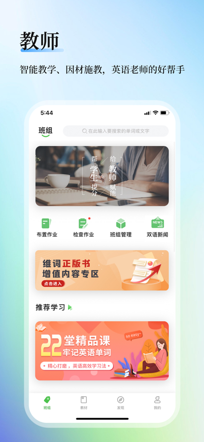 正版资源 优质保障 同步外研社正版教材,配合官方专业内容设计,解决正版资源获取困难的问题,满足教材同步教学的刚性需求。 家庭自学 省心省力 同步精编习题,独创三步跟读教学,训练题型多样化,培养良好学习习惯,全面提升学习能力;近百系列千余本图书,助力家庭教育,提升自主学习,能力多向拓展;学情报告即时产出,同步教师、家长、学生,分析能力薄弱点,高效过程性训练。 听说读写 全面训练 覆盖教、学、测完整闭环,优质的教材配套资源、专业听说课程、海量分级阅读素材。 多维练习 个性分析 教师线上发布练习,及时批改、高效反馈、精准定位,开展针对性教学,给予学生个性化学习引导,帮助学生攻克学习薄弱环节;全周期学习数据,学习计划量身定制。