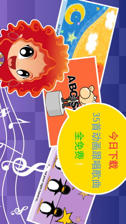 全高清卡通动画儿歌,吸引孩子学习英语的好帮手! 精心为所有年龄段的孩子设计的,包含数十首经典英文儿歌,并配以动画及跟唱字幕,内容引人入胜,从视觉、听觉和参与程度上最大程度调动孩子的积极性,寓教于乐。请调高音量,让孩子跟着唱吧。 ******** 完全支持 iPhone 5、4S、New iPad Retina显示******** ******** 原版歌词同步显示 ******** ******** 每一首歌都有相应的动画 ******** ******** 鼓励好奇心和想象力 ******** * 35首经典跟唱动画儿歌 ABC Song | Beanbag, Beanbag | Five Little Monkeys | Color | Jingle Bells | Little Goldfish | Hokey Pockey | If you're happy | A tisket, A tisket | Hands | Jack and Jill ...等等更多! * 我们会陆续加入更多免费动画歌曲