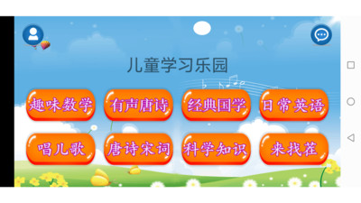 一款内容丰富的儿童教育学习应用 主要功能包括: 1、趣味数学,包括数一数和算一算,学习数学基础知识,简单的数学计算; 2、日常英语,包括英文字母和英文单词,26个字母以及日常英语单词的学习; 3、唱儿歌,包括学唱中文儿歌和英文儿歌; 4、唐诗宋词,唐诗三百首等唐诗和宋词; 5、科学知识,日常的科学小知识; 6、来找茬,漫画版来找茬和恐龙版来找茬; 7、唐诗,有声朗读的精选唐诗; 8、传统国学,三字经、弟子规、千字文、百家姓等传统国学内容;