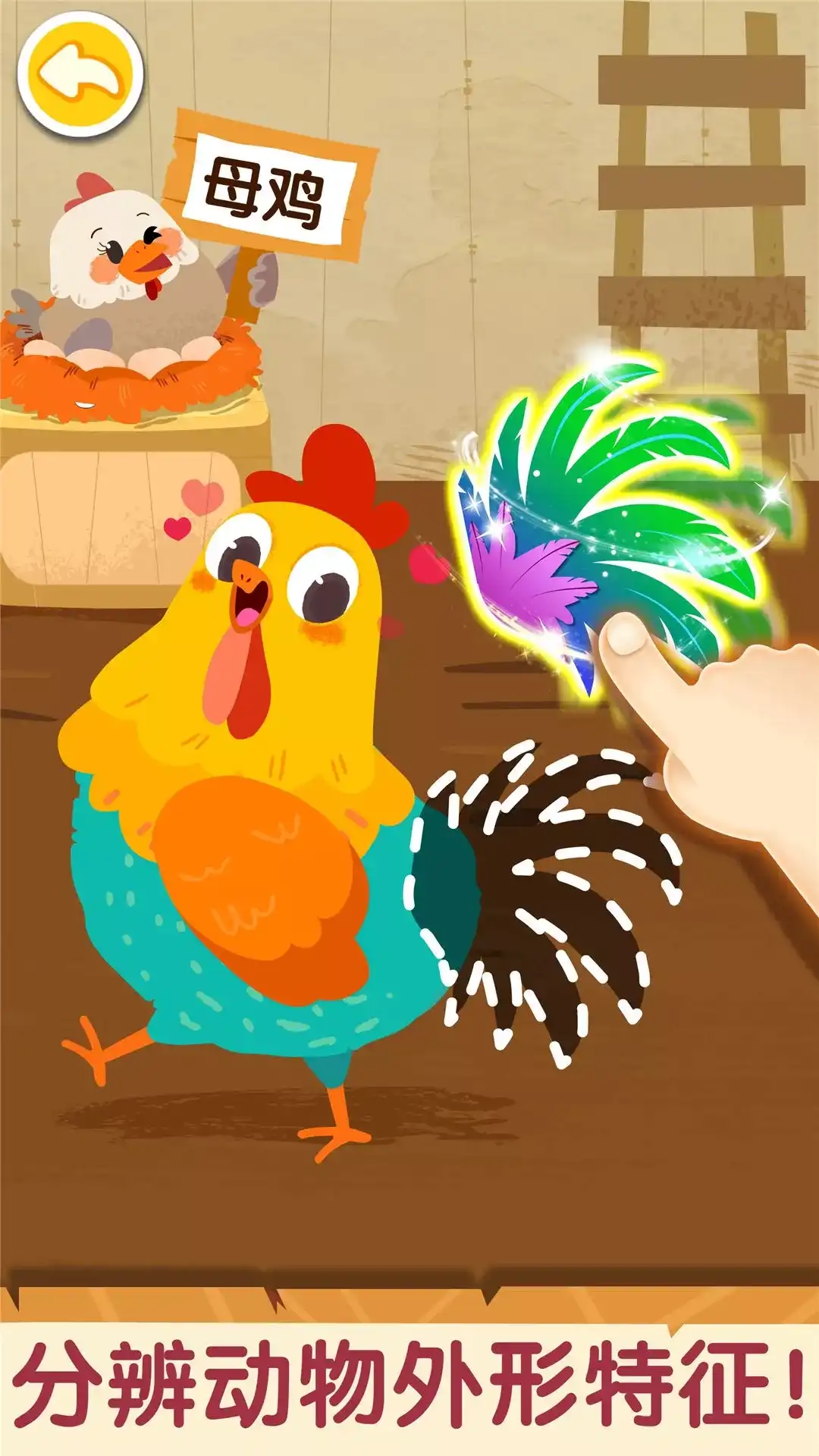 孔雀的家在哪里?为什么是狮子妈妈去捕猎? 这些宝宝好奇的问题,让【奇妙的动物家庭】来回答! 宝宝们,竖起好奇的小耳朵,动物的家庭故事要开讲啦! 外形特征:公鸡VS母鸡 宝宝分不清公鸡母鸡?【奇妙的动物家庭】有妙招!宝宝反复拼动物拼图,发现它们的外形差异:公鸡的鸡冠比母鸡大,羽毛更鲜艳。 寻找栖息地:树丛&草地 孔雀公主想住在林间草地,宝宝帮它打造舒适的家吧!先收集树枝、羽毛,用树枝拼搭出圆形的窝,接着铺满羽毛。孔雀公主的新家完成! 抵御天敌:袋鼠VS野狗 野狗入侵,小袋鼠有危险?袋鼠爸爸准备战斗,以一挑十,追逐、打败野狗。当领地遭到入侵,袋鼠爸爸随时保持警惕,保卫家园。 喂养幼狮:捕猎&觅食 小狮子饿了,狮子妈妈得寻找食物,喂饱小狮子。跟踪猎物足迹,靠近它们,瞄准时机,“咻”地一下扑倒猎物,小狮子的晚餐有着落啦! 【奇妙的动物家庭】中,不仅有森林之王-狮子、跳高达人-袋鼠、还有短跑健将-梅花鹿......它们的家庭故事,宝宝一定不能错过! 宝宝巴士(BabyBus)是专注打造儿童启蒙数字产品的原创品牌,累计服务全球5亿家庭用户。宝宝巴士秉承“快乐启蒙”的理念,用奇妙有趣的方式为儿童提供免费的数字内容,量身定制“好听”(国学故事)、“好看”(儿歌动画)、“好玩”(互动APP)等系列内容产品,让孩子在趣味中认知世界,感受“真、善、美”。 宝宝巴士(BabyBus)是全球5亿家庭用户的选择,陪伴宝宝快乐成长,让宝宝学会独立思考,享受探索世界的乐趣。同时也为家长们提供专业、全面、丰富及个性化的启蒙产品。 【宝宝巴士】儿童app,获得宝宝巴士世界、宝宝巴士儿歌、宝宝巴士故事、宝宝巴士奇妙屋、宝宝巴士、宝宝恐龙家园、宝宝梦想小镇、宝宝爱整理、公主化妆舞会、宝宝救援队、宝宝建城市、时尚小公主、奇妙宠物美妆店、宝宝爱水果蔬菜、宝宝动物世界、奇妙环游世界、宝宝救护手册、宝宝动物拼贴、宝宝消防安全、宝宝鸟类认知、宝宝小牧场、宝宝环保手工、宝宝梦想职业、宝宝天气认知、奇妙春游日、奇妙咖啡餐厅、奇妙蛋糕店、奇妙料理餐厅、奇妙小茶园、宝宝启蒙认知卡、宝宝音乐派对、宝宝颜色梦工场、奇妙手工调色、宝宝时尚设计师、宝宝创意拼贴、奇妙的工程车、奇妙昆虫世界、奇妙森林历险记、宝宝不怕、宝宝营养料理等使用者的一致推荐。 欢迎联系: 微信:宝宝巴士 微博:@宝宝巴士 官网:http://www.babybus.com 邮箱:cn@babybus.com