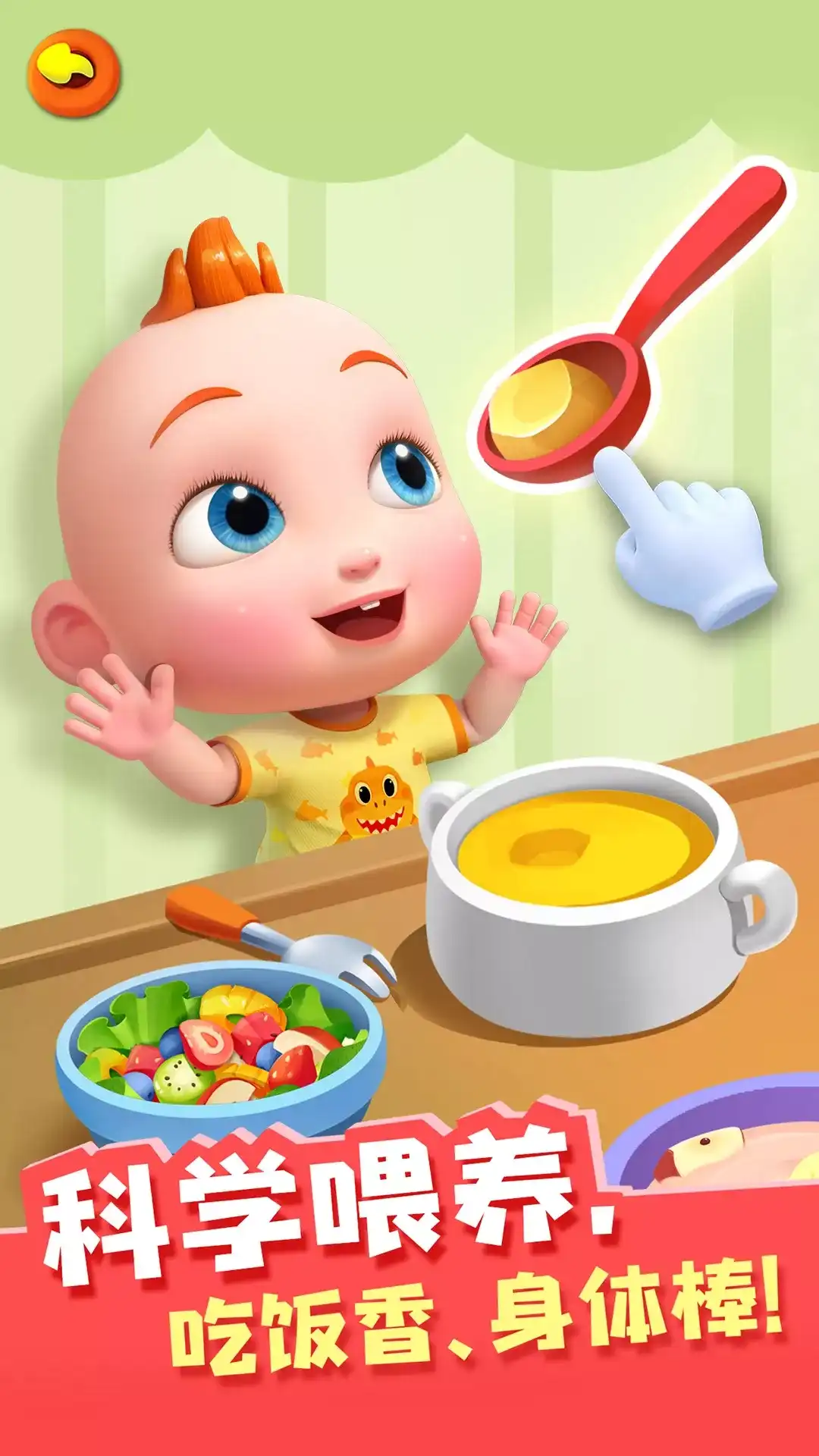 宝贝JOJO挑食,不爱吃饭,该怎么办呢?让【啾啾好习惯】来帮忙吧! 【啾啾好习惯】共设计了8大类拟人化的食物,通过展现神奇的烹饪步骤,让宝宝享受和萌趣食材的互动,爱上吃饭不挑食! 观察大考验,蔬菜在哪里 宝宝爱吃的美味菜肴怎么做呢?先来做个彩椒煎蛋吧:鸡蛋、盐、火腿……这里瞧瞧,那里看看,少了点什么呢?原来小彩椒们藏起来了!宝宝去烹饪厨具的附近,找一找调皮的彩椒吧。 再制作一份宝宝喜欢的美食——麦香鸡腿卷!给小鸡腿洗个“酱汁浴”,撒上胡椒腌制一下。哎呀,用来裹鸡腿的面饼还没烙好?宝宝快晃动平底锅烙面饼。别忘了还要切好西红柿和生菜等蔬菜哦,蔬菜们躲在哪里?快用火眼金睛找找看!早教益智,考验宝宝观察力 荤素好搭档,营养更均衡 辅食“豆腐鱼汤”该如何烹饪呢?瞧,褪去了鳞片外套的鱼肉,和宝宝喜欢的豆腐块组成美味搭档。一起跳进咸香的浓汤里。拿起厨房的烹饪用具搅一搅,熬制完毕!多喝鱼汤,可以提高免疫力哦。 烹饪前还需要做哪些准备?为食材们洗个澡,会让食物干净健康。富含维生素的西蓝花和胡萝卜,既能和土豆泥一起变成汉堡形状的薄饼,又能和虾仁一起清炒。宝宝快准备好,开始烹饪喜欢的营养美食吧!儿童早教,荤素搭配营养均衡 食物变形记,丰富想象力 快来改造可爱的南瓜姑娘吧!先带它去蒸个桑拿,让皮肤变得水润润。再给它敷个面膜?鸡蛋兄弟来帮忙啦,它们变成面膜,贴在南瓜姑娘脸上。然后,去“烤箱”美容院做个全身SPA! 大米想要成为儿童喜欢的美食饭团,看看它做了哪些“功课”吧!它搭乘降落伞的“顺风车”,跳进温泉,咕咚咕咚,喝饱水的大米,“嘭”地变成美味的饭团。饭团还需要烫个时尚的发型,来帮它挑个海带卷发吧!益智互动,丰富宝宝的想象力 创意搭配,烹饪花样美食 除了烹饪彩椒煎蛋,彩椒们还能用来烹饪彩椒焗饭哦!色彩缤纷的焗饭,让宝宝一看就很有胃口呢!将米饭舀进空心的彩椒里,加上玉米粒、芝士粒点缀,接下来的美食烹饪任务就交给厨房里的烤箱啦!益智早教,培养宝宝创造力 相信有了这些美食,宝贝JOJO一定能告别挑食,爱上吃饭!通过在儿童做饭APP【啾啾好习惯】里烹饪各种美食,帮助宝宝了解美食,养成营养的饮食习惯!