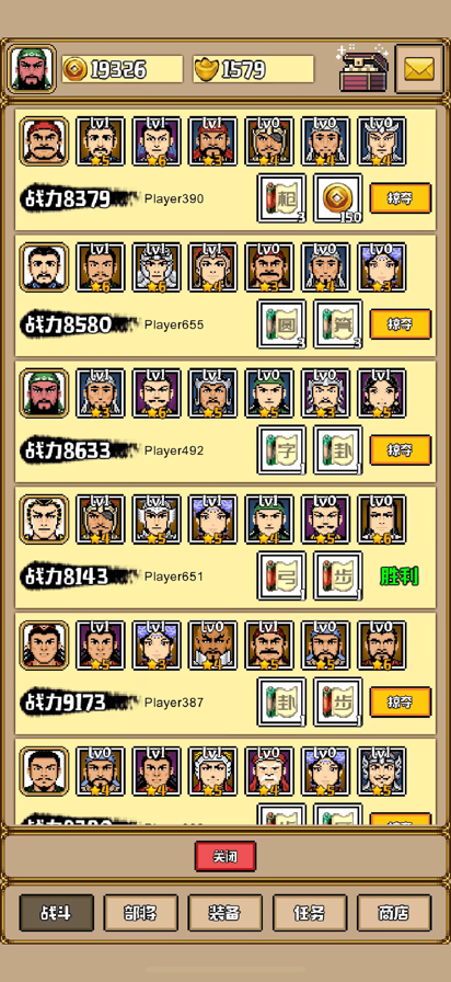 这是一个集策略放置休闲养成竞技等元素的三国题材多英雄多装备手机游戏 类似自走棋的战斗模式 为每个武将谋臣设计了特有的技能 。 装备按照经典的 灰 绿 蓝 紫 橙 红 区别稀有程度,红色为最好,属性最多。 每个部将可以配置不同的兵种阵型,相互之间有克制关系,合理的配置在战斗中收益明显。 除了这些,还可以配置谋略,谋略技能根据不同的范围冷却时间有所不同,谋略对目标阵型有着克制效果。 也精心为一些武将谋臣设计了专属武器(获得更强的技能和效果)比如 关羽的青龙偃月刀,张飞的丈八蛇矛,曹操的倚天剑等等。 小提示: 宝箱的奖励很丰富,应该尽量的开。 在游戏过程中会随机遇见一些其他玩家,打败他们获得资源。 武将谋臣的颜色只代表了技能的强度,和数值成长没关系。 休息的部将会根据等级星级提供战斗加成。 资源优先部将和装备。 每日任务一定要完成。 游戏内的[?]按钮有相应的说明。