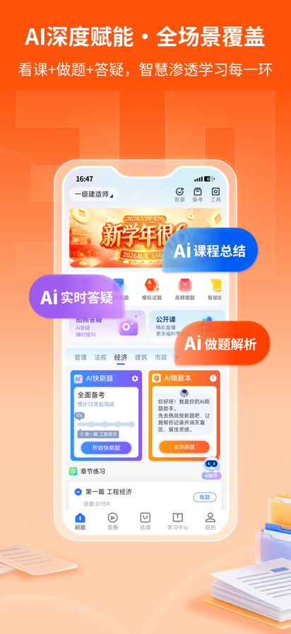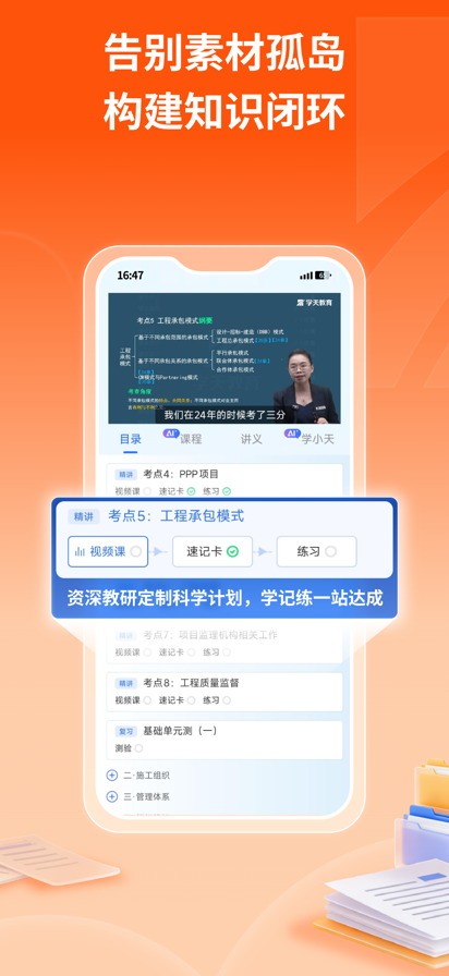 专为零基础学员量身打造,用心服务每一位备考学员!我们深知,备考一级建造师、一级造价工程师、注册安全工程师、试验检测师等职业资格考试的学员,往往需要从最基础的知识点开始,逐步构建完整的知识体系。因此,我们的学习软件汇聚了行业内顶尖的优秀讲师,精心打造了全套高质量视频课程,内容涵盖考试大纲的每一个章节和知识点,帮助学员从零开始,循序渐进地掌握考试所需的核心内容。 我们采用高效的学习模式,通过流程化的学习体系,帮助学员从点到面搭建完整的知识框架。无论是零基础学员,还是有一定基础的考生,都能在我们的平台上找到适合自己的学习路径。课程内容不仅注重知识点的讲解,还结合历年真题和经典案例,帮助学员深入理解考点,提升应试能力。