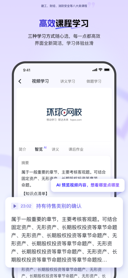 环球网校|环球青藤教育,始终践行“以学员为中心”,助力更多的职业机会,陪伴更好的幸福生活。 23年职教考证学习平台,专注建工类、财经类、医卫类、安全类、职业资格类等百余项课程,多种学习工具和高效学习方法,全面解决职考的学习瓶颈,让学习变得轻松、高效! 以学员为先,以内容为胜,以服务为重。环球会一如既往精进在路上。感谢所有学员在环球21年的发展历程中给予的信任和认可!相信全新升级后的环球青藤,会以更强的品牌和产品力助力更多的学员实现职业理想,拥抱美好生活!