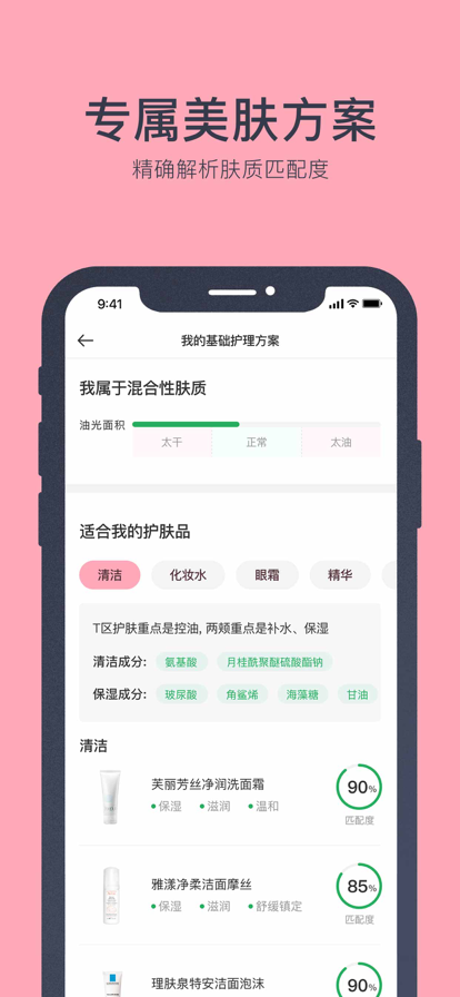 Hey,你今天真好看! 肤质问题,拍张照就知道 ----详细功能---- 【拍照测肤】不用买硬件,告别美容院,一次专业的肤质检测,一个手机就可以轻松搞定 【智能分析】从肌龄、出油、痘痘、黑头、毛孔、光滑度等多个角度,全面分析肤质 【护肤科普】一众护肤大V坐镇,陪你聊成分、谈功效、扒内幕、挑好货,从此理性剁手