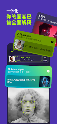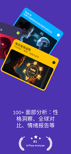 面对并认识你自己!<br>FaceYourself 带您踏上自我发现的启迪之旅。这款创新应用结合了最先进的面部识别技术和黄金比例原理,为您提供一个独特的窗口,了解您的个性和美丽。我们的 AI 驱动的皮肤分析仪和面部形状检测工具提供深刻而个性化的分析,连接您与一个拥有相似特征和兴趣的全球用户社区。<br>主要特点:<br>发现您的独特面部形状: 通过我们先进的面部形状分析仪,解锁面部形状的秘密。了解您的独特轮廓如何与黄金比例对齐,从而提供对您自然美和个性特征的新视角。<br>革命性的皮肤分析仪: 通过我们的 AI 驱动的皮肤分析仪深入了解您的皮肤健康和外观。获取个性化的建议和见解,帮助您保持光彩照人和年轻的肤色。<br>黄金比例面孔: 使用我们的黄金比例面部分析探索您的面部对称性和比例。发现您特征的美学和谐,以及它们如何促进您整体的吸引力和个性见解。<br>高级面部个性洞察: 通过我们的皮肤分析技术体验新的自我认知水平。通过面部特征的视角,深入探索您的个性方面,从情感倾向到潜在职业道路。<br>全球连接并找到您的名人同款: 加入我们充满活力的社区,与全球共享类似面部特征的人联系。还有乐趣发现您最像哪些名人!<br>爱情与星座兼容性: 根据皮肤分析仪和星座,探索与伴侣和朋友的爱情兼容性。理解您关系中的深层次联系和动态。<br>每日洞察与情绪分析: 根据您的面部识别接收每日洞察和情绪报告。为生活的各个方面提供量身定制的建议,从个人成长到关系动态。<br>为什么选择 FaceYourself? 个性化体验: 每次分析都根据您的独特面部特征量身定制,提供对自我的深刻理解。 连接与分享: 与全球社区互动,分享经验,建立有意义的联系。 科学与美丽相遇: 我们的应用将科学分析与美容见解结合,提供对您个性和外貌的全面视角。