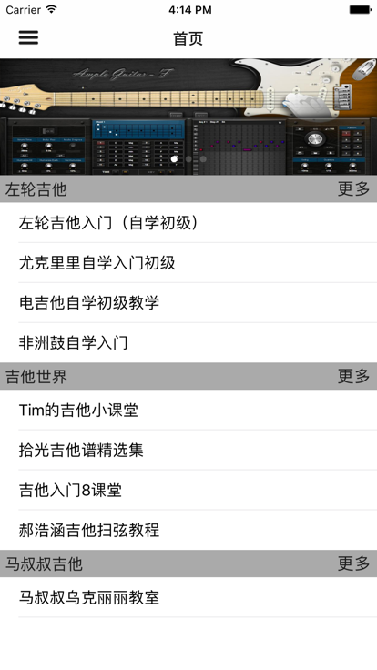 专业的吉他入门教程指导 拥有丰富的吉他入门课程 跟着视频练习,学习效果倍增,还拥有吉他入门指导书籍,让你从头到尾学的透透彻彻,最好的吉他入门宝典 快来使用下载吧