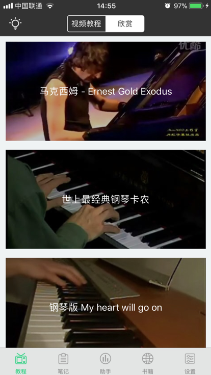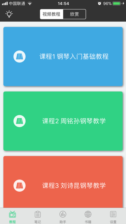 【最经典的钢琴基础入门教程】 经典视频讲解,助你轻轻松松钢琴演奏入门! 钢琴的学习有两样东西非常重要:1)激发学习兴趣并持之以恒。2)按照适合自己且有效的方法学学习。教程贵精而不贵多,视频为基础,笔记为重点。 == 功能特色 == 【视频讲解】四套钢琴基础入门教程,总有一套适合你。 【记笔记】边看视频边记笔记。好记性不如烂笔头。支持拍摄或从系统相册添加照片到笔记。支持笔记排序。支持笔记编辑。 【学习跟踪】结合一万小时理论,跟踪每天和总的学习目标。如果你能持之以恒到一万小时的学习,你也能成为这方面的专家。 【书籍推荐】为了推荐最靠谱的书籍。