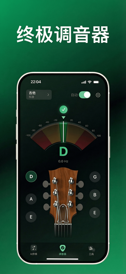 吉他调音器高精度版 是一款更简单、更快捷、更精确的调音应用! 我们的调音器适用于吉他、尤克里里等弦乐器,无论你是初学者或者已经成为吉他高手,你都能通过我们的应用,随时随地的校准你的吉他! 主要功能: --简单、好用,适合古典吉他、尤克里里(无需额外的手机硬件支持) --支持专业的高精度,满足更高水准用户的精准调音需求(请在设置中开启) --简单到无需软件基础,即可快速掌握使用技巧 --支持自动,手动调音模式 --并且我们提供了炫酷精准的节拍器功能,多种设置满足您对节拍练习的需求