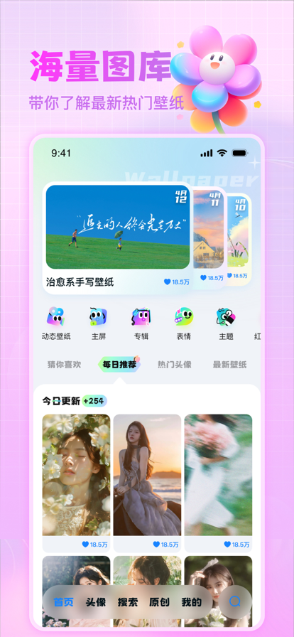 【原壁纸11,支持账号同步登陆】 「海量图库」免费高清优质图片,专为大屏打造,完美适配 「美图细致分类」每日200+高清壁纸头像更新,精美主题随意换; 21+主题分类,1000 +标签归类快速定位你的喜欢偏好 「智能搜索推荐」智能搜索壁纸,头像,表情包,贴心区分动态图,静态图,专辑条件筛选,轻松搜索你的最爱 「原创设计入驻」专业插画师,原画师,设计师,摄影师,品牌IP入驻平台,尊享为你设计壁纸头像特权 「产品体验升级」左右划屏快速切换预览,享受全屏无死角视觉盛宴,宽屏壁纸专为iPhone,iPad量身打造 「个人图集功能」用户可以通过创建图集将自己喜欢的图片进行归类,也可以通过查看其他图集收藏他们图集里的图片 -反馈:有任何问题可以到软件内部的“设置-》意见反馈”发给我们 *本应用需要网络支持,推荐使用Wi-Fi网络。 使用协议:https://api.tdz5.com/desk/vip/service 隐私政策:http://joke.2766698.com/htmlpage/privacypolicy.html