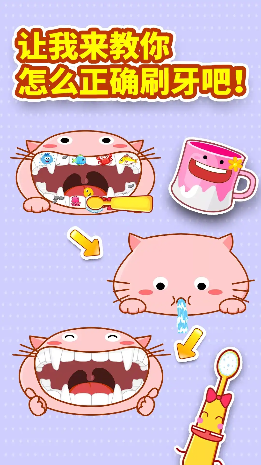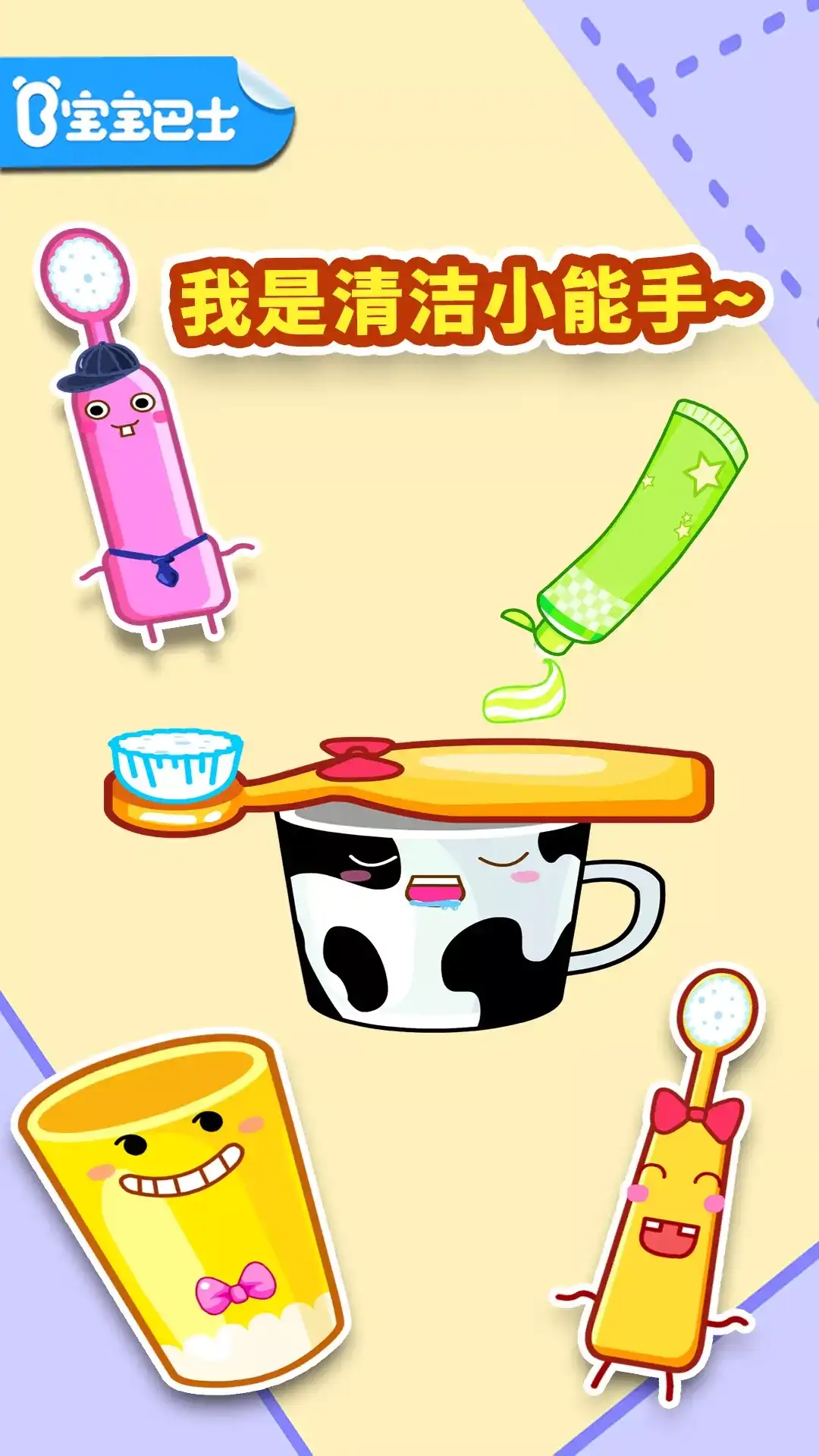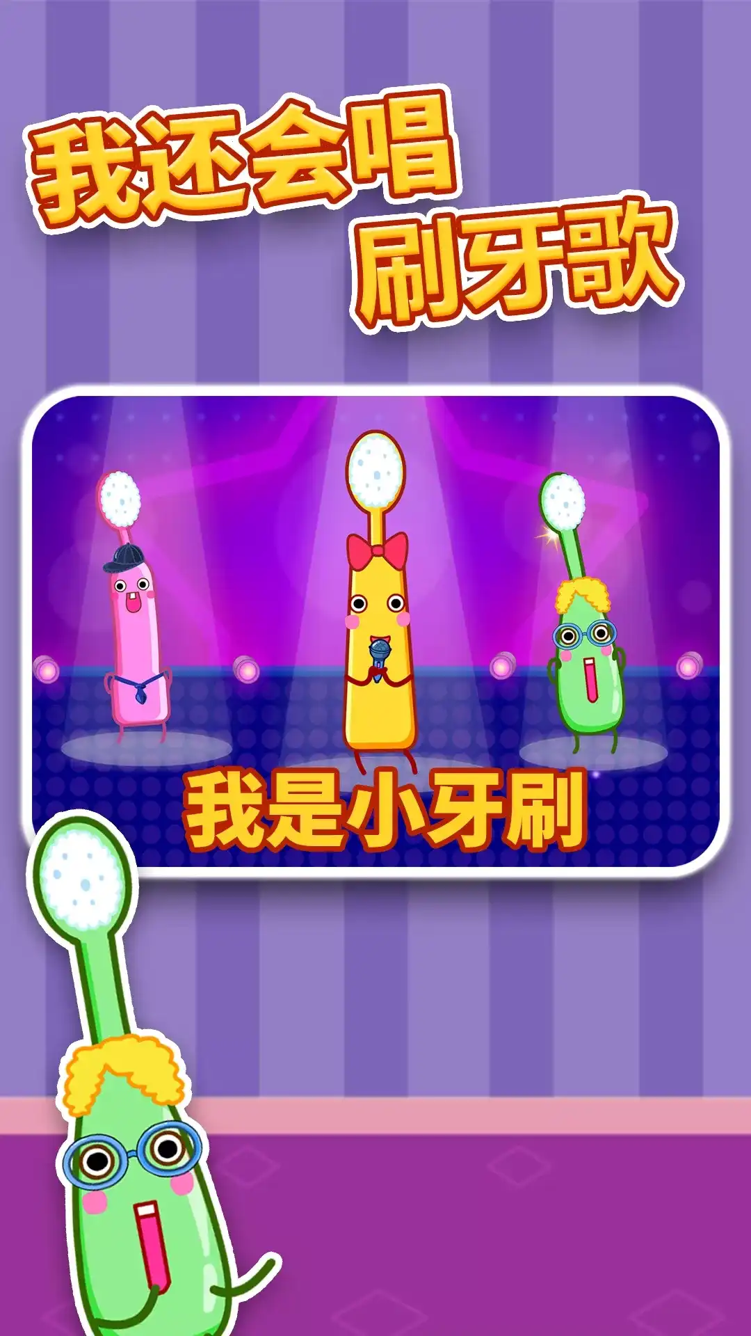 【宝宝爱刷牙】大改版!重磅打造趣味互动新模式:让宝宝和小主人公娜娜“并肩作战”,“消灭”可恶的牙齿细菌!宝宝轻触屏幕,和娜娜击个掌,开始刷牙! 沉浸式互动,打造刷牙新体验 “3、2、1——”看,屏幕上卡通版的是娜娜的口腔,哇,好多细菌!从现在开始,宝宝和娜娜一起认真刷牙,将细菌统统打败。 屏幕上还有一个动态贴纸!这是宝宝每天可以解锁的“新造型”:今天“戴”恐龙帽,变身小恐龙;明天“换”公主皇冠,你就是勇敢公主! 专为宝宝设计,更科学合理 宝宝听语音引导:“牙齿表面,绕圈刷”、“上牙下牙,都要刷”……参照了“圆弧刷牙法”,让宝宝轻松掌握。屏幕右上角,娜娜也在示范! 宝宝和娜娜已经“消灭”了好多细菌!但不能松懈,刷牙时长至少要2分钟,才能有效清洁口腔……屏幕左上角正在倒计时,再坚持最后10秒! 每日拍照打卡,助力好习惯养成 “咕噜咕噜,吐掉漱口水……”结束这一步,今日份的刷牙打卡完成!“咔嚓”——拍个照,留个小纪念!照片上还有护牙小贴士,每日更新哦。 和娜娜一起刷牙,宝宝是不是觉得很有趣?相信在【宝宝爱刷牙】的陪伴下,宝宝很快就能养成爱刷牙的好习惯!
