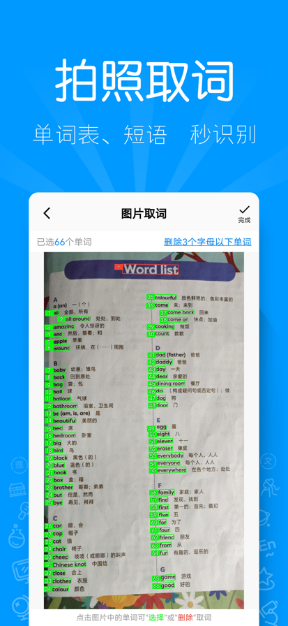 福利来啦~ 老师给孩子布置的听写作业,没时间、不会读,怎么办? 用AI听写,拍照取词、标准发音、自动批改,您的学习好帮手! 再也不用麻烦父母啦,自己搞定so easy~ 功能简介 1. 支持英语和汉语词汇AI听写; 2. 拍照取词:单词表、短语和中文词汇秒识别,还能支持物体识别,哪里不会拍哪里! 3. 听写任务单:自由添加词组,查释义、练口语,支持朗读中文、乱序、开卷等多种听写方式; 4. 键盘作答:使用定制软键盘输入,可有效防止输入法联想识别,并且支持外接USB或蓝牙键盘,提升学习效率; 5. 手写作答:好记性不如烂笔头,在屏幕上手写输入,支持触控笔或连接智能笔作答,加深书写记忆; 6. 拍照作答:脱离电子设备,可以在纸上书写听到的答案,作答完成后拍照上传AI批改,用最传统的方式脱离外界干扰; 7. 作答统计:与好友一起完成任务单,查看作答分享、排名统计和单词正确率,邀请搭子一起来听写吧! 8. 收藏及错题本:任务单听写错误单词自动收录进错题本,对不熟悉的单词也可以主动收录,方便梳理和复习。 9. 同步教材:实时同步更新小学到高中全国各地教材版本的单词表,轻轻一点,即刻开始!