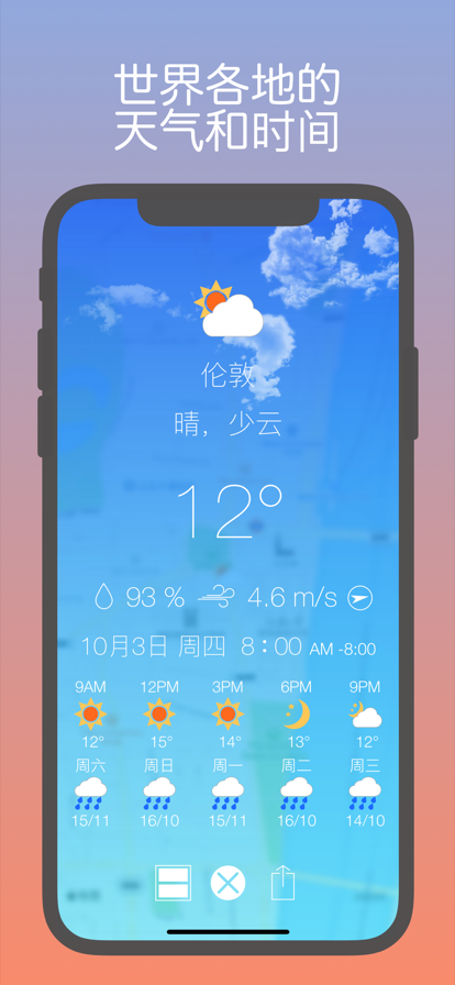 「我的天气 · MyWeather」是一款精致而强大的天气 App,为你提供实时温度、空气质量,十日天气预报,精准分时趋势。强大天气推送,覆盖中国 3000+ 市县、全球 200000+ 城市。专为 iPhone & iPad 设计,更有众多精心手作的定制主题。 =特别亮点= · 精准数据:十日天气预报,分时趋势,多数据源综合显示 · 全国空气质量指数 · 强大推送:今日明日天气预报、空气质量、灾害预警即时送达 · 预报列表:亲友天气、世界城市同屏展示 · 所有风格都在里面:精心打造定制主题,黑夜、像素、唐风,季节限定主题 · Apple Watch:清晰简洁的信息架构 · 多平台:针对不同屏幕尺寸特别优化 · 分享是美德:多种分享方式,还可写下心情感悟 iDaily · 每日科技荣誉出品 -------------------------------------- * 您可在程序设置中启用「后台更新推送城市」,程序将每 6 小时更新一次地理位置。 -------------------------------------- 关于程序内提供的「按月订阅」「按年订阅」功能: 您可以在程序内使用 iTunes 自动续订功能获取会员专属功能,我们提供「每月 CNY ¥3」「每年 CNY ¥30」套餐。 确认购买后,将会从您的 iTunes 帐户中收取费用。您可以在每个周期结束至少 24 小时前取消下个周期的订阅,每个周期结束 24 小时内将会自动续订,已订阅的周期将无法取消。 隐私保护政策:https://clover.ly/privacy 用户使用协议:https://m.icity.ly/tos
