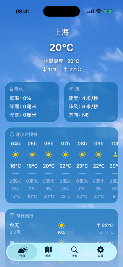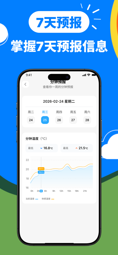 可以通过定位系统获取当前城市位置并获取实时温度,显示未来24小时天气预报,对出行很有帮助,可以准确的预告天气以及温度的变化,让您选择最佳的出行时间和着装。 【功能特色】 获取当地城市实时温度和天气 准确获取当地未来24小时城市天气温度变化 城市天气打卡记录,让照片记录出行天气 实时显示每小时温度变化。 【订阅服务说明】 1.订阅价格:订阅价格取于选择的订单套餐,以实际订阅价格为准。 2.付款:用户确认购买并付款后计入iTunes账号。 3.订阅将自动续订,除非您在当前订阅周期结束前至少提前24小时关闭自动续订。 4.苹果iTunes账户会在到期前24小时内扣费,扣费成功后订阅周期顺延一个订阅周期。 5.订阅可以由用户管理,并且可以在购买后进入用户的账户设置来关闭自动续订。 6.订阅可无限制的访问我们的高级功能。 7.用户协议:https://ejt4ex1lt6.feishu.cn/docx/N4sldYPk5ouARJxnC6rcbErTnPc 8.隐私政策: https://ejt4ex1lt6.feishu.cn/docx/FYv7dJuaooVKkQxXHvwcEsXPnnb