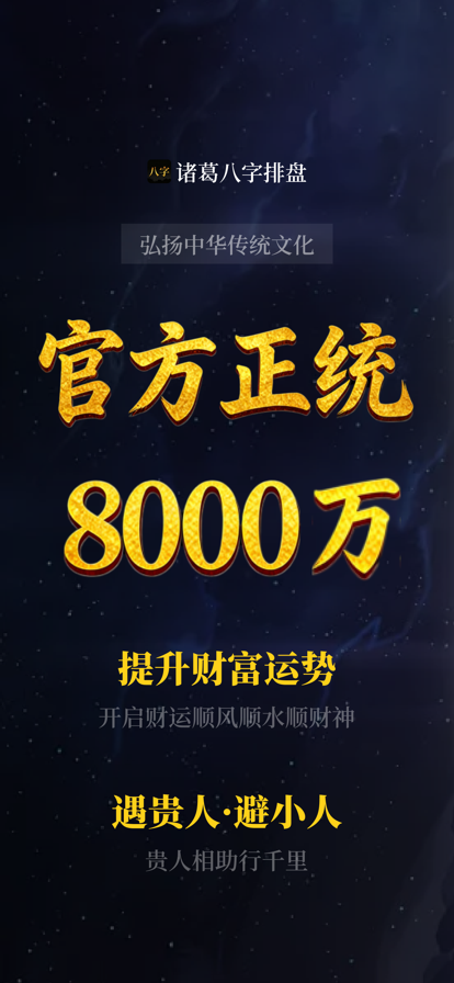 《诸葛八字排盘》APP不仅是一款专业的八字排盘工具,更是一个弘扬中华传统文化的智能平台。通过对大运、流年、流月、流日等多维度时间的运势解析,以及结合周易64卦的智慧,为用户提供全面的命理解读服务。同时,丰富的学堂内容让用户可以在此学习和探索命理、周易等古老文化的精髓,帮助每一个人通过命理智慧优化生活决策,走向人生巅峰。 隐私政策(隐私政策):https://wwt.qingfeng003mydufspa.top/zhugepaipang/privacy.html 用户协议用户(协议):https://wwt.qingfeng003mydufspa.top/zhugepaipang/userPrivacy.html 会员服务协议(会员服务协议):https://wwt.qingfeng003mydufspa.top/zhugepaipang/buyProtocol.html 订阅特权: 去除所有广告,畅快使用全部功能 订阅说明: 通过Apple ID账户付款 季度度会员预计前24小时自动续订,随时在iOS设置中取消 本应用使用Apple官方EULA(最终用户许可协议) https://www.apple.com/legal/internet-services/itunes/dev/stdeula/