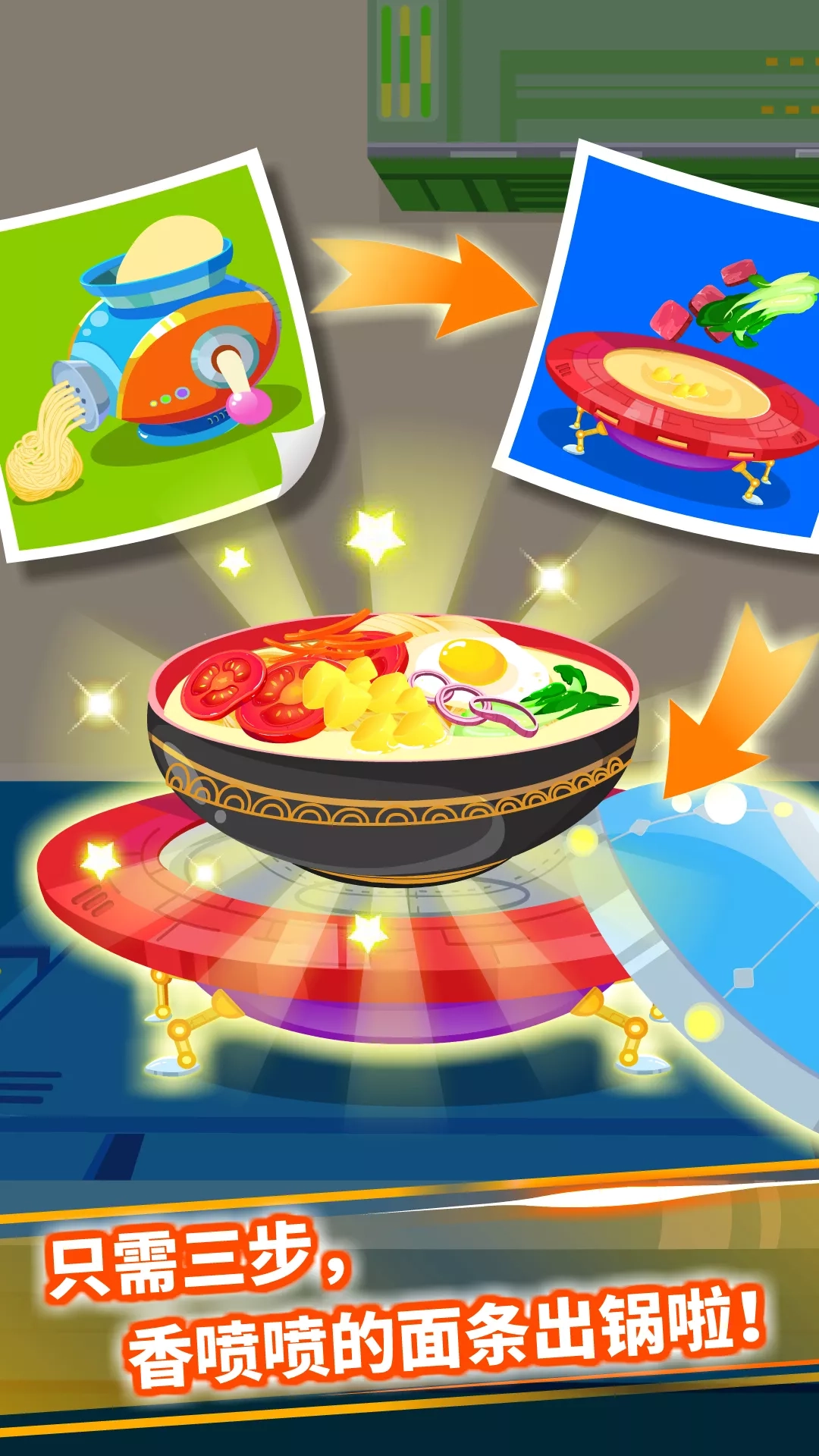 【宝宝星际厨房】是一款模拟经营儿童餐厅的早教益智app,通过在悬浮的太空舱中制作烧烤、烤披萨、做汉堡、薯条等美食料理,在宇宙小厨房中探索科幻秘密,玩转魔法厨具,打造梦幻厨房,从而培养锻炼孩子对科技的热爱和想象力! ——产品内容—— 【科幻厨具】机器人烤箱、飞碟汤锅、音乐盒烧烤架....带你体验科幻版模拟厨房! 【美食DIY 】青椒香肠串成串、披萨撒点玫瑰花...任性混搭,你的美食,你做主! 【丰盛菜肴】无敌光波煎饼、浓汤蔬菜面、美味汉堡...丰富的菜品,供你挑选! 【多种做法】煎薄饼、剁牛肉、炸土豆...煎、炒、煮、炸...花式料理私房菜! 【多样食材】澳洲牛肉、法国洋葱、顶级面粉...营养综合,吃出健康好身体! ——产品特色—— 画面精彩,无限激发食欲; 益智互动,培养动手能力; 开拓思维,释放宝宝想象力! 【宝宝星际厨房】通过厨房做饭、模拟经营等早教益智互动形式,达到幼儿早教益智启蒙的良好效果。宝宝巴士早教大全,还有更多玩法等着宝宝来体验哦! 【宝宝巴士】以孩子的兴趣启蒙为出发点,根据幼儿不同年龄段的左右脑发育、敏感期特点和学习重点来设计产品,打造“年龄+能力”的多元化产品体系。旗下产品涵盖儿童故事、儿歌、儿童拼图、儿童数学启蒙、宝宝英语启蒙、汉字启蒙、乐高积木、儿童绘画等多领域的早教启蒙内容,合力打造完整的宝宝巴士早教大全,帮助宝宝成长。让孩子在早教益智互动中独立思考,自由学习,享受探索世界的乐趣。 【宝宝巴士】是众多儿童早教家庭的一致选择,得到宝宝巴士儿歌、宝宝巴士故事、宝宝甜品店、宝宝巴士早教大全、 宝宝巴士奇妙屋、宝宝超市、奇妙美味日记、奇妙料理餐厅、宝宝美食街、宝宝小厨房等使用者的一致推荐。 _________ 欢迎联系: 微信:宝宝巴士 微博:@宝宝巴士 官网:http://www.babybus.com 邮箱:cn@babybus.com