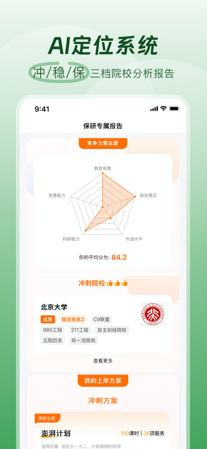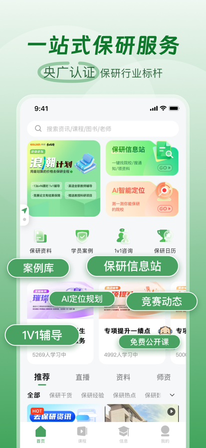 高顿去保研是高顿集团旗下保研辅导品牌,全国150家分校与学习中心,覆盖保研全周期36项服务,为保研学子提供资讯、规划、辅导等一站式上岸支持。 【新人礼包】 注册即送新人专属学习礼包,超多保研资料、精品课程等你来领,更有实物好礼等你来拿。 【保研信息站】 保研大事件每月速递,招生政策、夏令营、预推免、九推院校资讯实时推送,政策变动/新增项目/捡漏机会秒推送。 【AI定位系统】 10万+数据库智能分析,为你生成冲刺/稳妥/保底三档院校报告,提供专业分析建议。 【免费学习资源】 汇聚保研全流程实用免费资料与精品好课,院校规划指南、绩点提升策略、英语与笔面试技巧、科研竞赛辅导一应俱全,带你从零基础到成功上岸。 【院校精鉴】 学长姐精心推荐的"强学院弱学科""新设专业"等优质院校专业,揭示入校门槛、竞争强度及推免名额等关键信息,帮助考生突破信息壁垒,追踪院校竞争热度,多维度竞争力诊断,实现"低分高就"的择校策略。 【保研经验集】 汇集学长学姐真实逆袭故事:跨专业保研、双非逆袭985、摆烂人突击上岸……带你汲取实战经验,找到专属上岸路径。 【竞赛资讯中心】 覆盖100+高含金量竞赛,支持订阅感兴趣赛事,随时掌握赛程进度;更有各大竞赛独家攻略助你高效备赛。 【案例实战引擎】 5000+保研案例库,双非逆袭985、跨专业保研等真实案例,智能匹配策略。 【1V1定制辅导】 覆盖绩点提升、英语口语、科研指导、论文发表、面试模拟、文书准备等多项需求,导师1V1全程护航。