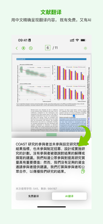 Read papers, get ideas, then write. ivySCI 致力于为科研工作者提供贴心和智能的文献阅读和管理工具,帮助科研人节省大量的时间,从而更有效从事科研工作,而不是将时间浪费于冗长的文献管理,特别是不需要浪费数周时间用于毕业论文的参考文献格式更改。 ivySCI 作为贴心的助理,为您提供全方位的辅助,所以您,作为科学家,可以致力于科研中需要的实验,数据和写作。 从一开始,您就无需分担精力于文献的管理,因为 ivySCI 都为您做好了。 具体来说,ivySCI 从下面的方式为您提供服务: 1. 您导入 PDF 文献后,我们为您自动识别论文的元信息 (Meta), 包括 标题,作者,摘要, DOI, Journal, 以及 期刊重要的影响因子 (CiteScore) 2. 针对每一篇文献,我们提供内置的翻译和查词,为您解决语言故障。 3. 我们为每篇文献都提供 AI 辅助阅读,自动总结,你只需要提问即可快速得到回答。 在 Mac 版本里,我们还提供 AI 润色和翻译等功能。 4. 我们为您分析每一篇文献,从而在您需要参考文献的时候,点击即可查看,而无需翻转到论文的最后。你查看完参考文献后,可以决定是否下载。您可以自己配置下载引擎,从而提供更多的渠道来帮助您更快找到所需文献 5. 我们为您提取 论文中的图片,从而在您需要查看图片的时候,我们会为您提供图文对照,您可以对图片进行放大缩小,以您需要关注的细节为准 6. 我们为您分析 PDF 结构,通过大纲为您展示。 如果有缩略图,您当然也可以查看 7. 您可以在任何一个设备上创建笔记,笔记通过云端共享,您随时随地可以访问。 8. 您的文献和笔记是和您的账号关联,您在任何设备上登录(包括 iPhone, iPad 以及 Mac 等)后,即可使用您的文献。 9. 当您在 Word 或者 WPS 里写作时候, 通过 ivySCI 提供的插件 ivyCite 您可以随时引用文献和笔记,您无需离开您的写作软件,从而可以保证思路不被打断! ivySCI 根据科研的需要,提供多种客户端,包括 Mac和 PC, iPad 以及 iPhone 等设备. 不同的设备目标不一样,桌面端为您提供全方位的管理,包括很多复杂的操作; iPad端负责阅读以及基本的操作; iPhone 可以帮助您了解基础信息。 根据智能分析的能力不同,以及不同的 PDF 格式限制,部分功能可能不能提供,我们会持续不断的优化引擎。