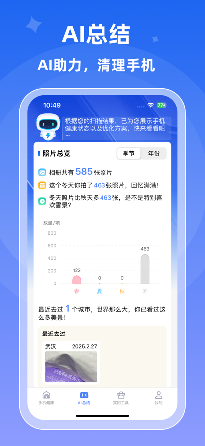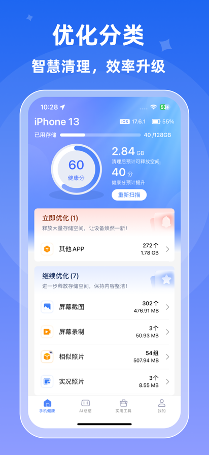 福禄手机管家是一款集 照片视频整理、AI 智能分析、网络测速、通讯录管理 于一体的手机优化工具,帮助您轻松管理手机资源,保持设备高效运行! 手机健康 – 一键清理,释放存储空间 • 相册整理:智能识别 屏幕截图、相似照片、网络图片、模糊照片 等,快速清理无用图片。 • 视频管理:检测 超大视频文件,轻松释放存储空间。 • 通讯录优化:找出 缺少信息、重复联系人,保持通讯录整洁。 • 日程管理:智能检测 已完成的日程,助您专注重要任务。 AI 智能分析 – 了解您的数据趋势 • 相册统计:按 年份、季节 统计照片,回顾美好回忆。 • 旅行足迹:自动分析去过的城市,珍藏您的旅行历史。 • 联系人分析:发现同姓联系人,优化通讯录结构。 • 手机使用建议:基于您的使用习惯,提供个性化优化方案。 实用工具箱 – 让手机更安全更便捷 • 网络测速:实时检测网速,确保网络流畅稳定。 • 通讯录备份:云端存储联系人,随时恢复,防止数据丢失。 • 伪装来电:模拟来电,轻松脱身社交困境。 • 手机防盗:手机被移动时自动发出警报,防止遗失或被盗。 无论是清理存储空间、优化手机数据,还是提升安全性,福禄手机管家 都能为您提供 高效、智能、便捷 的解决方案。快来下载体验,让您的手机更加整洁高效!