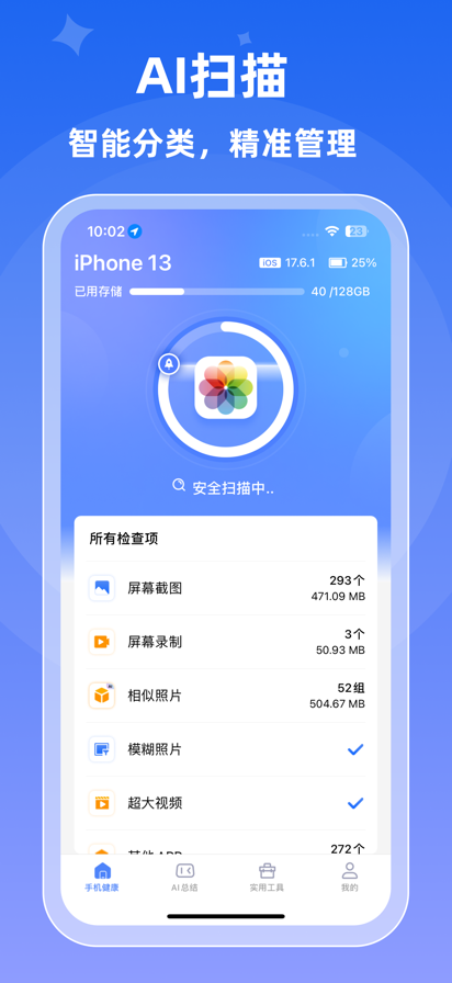 一键清理大师 拥有超强清理能力的手机管家,智能管理手机照片、视频和通讯录;一键清理大师还拥有超大云存储空间,可轻松备份照片、视频和通讯录,再也不用担心手机空间不够用啦, 您可以通过一键清理大师进行一键智能清理,轻松释放空间,让手机时刻保持最佳状态。 功能特点 【一键清理】 照片、视频、通讯录,一键搞定,深度释放手机空间 【照片管理】 智能清理相似照片、模糊照片、截图照片 【视频管理】 重复视频、超大视频,一键整理,轻松解决 【通讯录管理】 智能清理合并、备份或快速删除重复联系人、不完整联系人 【超大云盘】 可上传照片、视频、文档,最大500G超大空间随心用 订阅说明 -您可以订阅一键清理大师全部功能的无限制访问权限。 -订阅按月度或季度收费,费用视所选订阅计划而定。 -确认购买时会从 iTunes 账户扣款。 -您可以在当前订阅结束 24 小时前关闭自动续订,否则将自动续订。 -当前订阅结束前 24 小时内会从您的账户扣款续订,费用取决于您选择的计划。 -用户可以管理订阅,购买后可以前往用户账户设置关闭自动订阅 使用协议: https://docs.qq.com/doc/p/649c74d41ddb48b411487aa7959dd18d4744464a 隐私政策: https://docs.qq.com/doc/p/a0a3b4bf99c489b08d80dd2b7536ee78d6e4ba1d