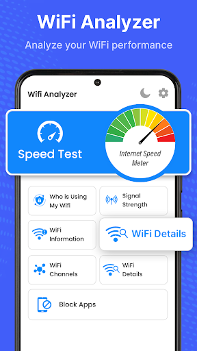 免费的网速测试应用程序是准确测试网速的强大工具。使用适用于 Android 的实时 WIFI 分析仪分析并发现您的互联网上传和下载速度。使用互联网速度计应用程序体验极快的互联网速度测试。利用我们的互联网速度测试应用程序的强大功能来优化您的在线活动。使用 Wi-Fi 分析仪速度测试应用程序向终极互联网解决方案问好。通过这款功能强大的实时互联网速度检查应用程序来发现您的互联网连接的真正潜力,该应用程序可以测量和分析您的 wifi 速度测试大师的各个方面。无论您是流媒体视频、在线游戏还是只是浏览网络,这款快速 WiFi 速度计应用程序都将确保您享受无缝且闪电般快速的互联网连接。 WiFi 分析仪会检查您的连接情况并显示互联网下载速度、互联网上传速度、ping 和其他一些连接结果。这款实时互联网速度计应用程序还显示您的 WiFi、3G、4G LTE 或 5G 强度。<br><br>实时网速测试<br>使用我们全面的互联网速度检查应用程序释放您的互联网连接的全部潜力。通过这款免费的数据速度测试应用程序,您只需几秒钟即可评估您的上传和下载速度,从而获得有关您的 WiFi 速度带宽的宝贵见解。现在,您可以解决互联网速度慢的问题,并优化您的互联网连接,以在互联网速度计和互联网速度指示器中快速实现最大效率。<br><br>Android WIFI 分析仪<br>担心 WiFi 盲区或信号强度差? Wifi速度分析仪的覆盖分析功能可以找出您的wifi 3g 4g 5g速度网络的覆盖范围,以便您可以指示信号强度较弱的4g 5g wifi区域。借助实时 wifi 速度测试应用程序,您可以优化 3g 4g 5g wifi 设置,并在家庭或办公室的每个角落享受一致的连接。这是适用于 Android 的最佳 Wifi 速度检查应用程序。下载适用于 Android 的 WIFI 速度计并免费测试 wifi 速度。<br><br>互联网速度测试结果跟踪<br>使用我们的历史结果功能跟踪一段时间内您的互联网速度和连接情况。记录过去的互联网速度测试仪结果并确定性能的任何趋势或变化。借助互联网速度计和 WIFI 分析仪的历史数据,您可以对互联网服务和 WiFi 速度做出明智的决定。<br><br>互联网带宽监控<br>获得 WiFi 速度测试结果和覆盖范围洞察后,请采取下一步优化互联网带宽。我们的应用程序互联网带宽监视器提供个性化建议,以提高您的网速测试性能。这是最好的 wifi 带宽监控应用程序。<br><br>分享和比较互联网速度<br>测试并与朋友、家人或互联网服务提供商分享您的 WiFi 速度测试结果。使用 wifi 速度计应用程序,将您的互联网速度与世界各地的其他人进行比较,并深入了解您在全球范围内的实时互联网速度测试性能。<br><br>互联网数据使用监控<br>Wifi 数据使用监控器和管理器跟踪您的互联网数据使用情况。这个互联网速度监控应用程序可让您监控 wifi 设备。这款 wifi 速度测试监视器是 Android 的终极 wifi 数据使用监视器。我们的免费互联网数据使用监控器可以轻松监控您的互联网数据使用情况、数据限制。<br><br>为什么选择互联网速度测试和 Wifi 分析仪应用程序<br>实时测试互联网下载和上传速度。<br>适用于 Android 的最佳 WiFi 分析仪。<br>免费 Wifi 信号强度计。<br>测试 Wi-Fi 信号强度。<br>免费速度测试 4g 5g wifi。<br>创建互联网速度测试历史记录。<br>找到最强的互联网 WiFi 信号点。<br>免费的互联网速度计。<br>免费 Wifi 速度测试器和信号强度。<br>状态栏中的实时互联网速度更新。