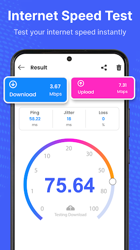 用 Wifi 速度测试时,您可以检查您的互联网和 wifi 速度。 Wifi 分析仪保护您的隐私并提供最好的免费 VPN。 互联网速度测试分析器提供有关您的内部和外部 IP 地址的完整信息。 互联网是日常生活所必需的,因此如果您面临网速问题,请下载网速测试分析仪并检查您的网络性能。<br><br>使用 Wifi 分析仪,您可以测试 wifi 信号强度并以 Mbps 速度显示在图表中。 速度测试大师告诉你下载和上传速度。 以更低的延迟和更高的带宽检查您的互联网速度,以改善您的网络。<br><br>⭐<b>速度测试关键功能</b>⭐<br><br>✔️ 您可以通过速度测试准确检查您的 wifi 速度。<br>✔️ 准确快速的 wifi ping 测试。<br>✔️ 保护您的隐私并提供最好的免费 VPN。<br>✔️ Wifi 分析仪测试您的网络信号强度并保存互联网历史记录结果。<br>✔️ 速度测试在显示屏上为您提供网络信号图。<br>✔️ 网速测试分析仪会告知您周围的网络。<br><br><b> 最好的免费 vpn 应用程序 </b><br>免费 虚拟专用网 与 3G、4G/LTE、5G、Wi-Fi 以及所有移动本地数据网络和 LAN 连接兼容。 互联网速度测试应用程序全球范围内 连接到不同的免费服务器。 它是安全的 VPN,您可以更改位置并连接到不同的服务器。<br><br><b>网速测试分析仪</b><br>此 Wifi 分析仪测试 3G、4G、5G、DSL、ADSL 的速度,以及网络性能测试,有助于评估和测量抖动错误和延迟率的速率和统计数据。 ping 测试有助于确定网络连接上存在的抖动量(网络延迟)。<br><br><b> Wifi 测试仪和网络分析仪</b><br>速度测试大师为您提供完整的速度测试信息并分析使用的是哪个网络。 Wifi 分析器分析连接、收集数据、识别问题和性能,并对导致 Wi-Fi 信号较弱的问题进行故障排除。 您可以诊断不良网络连接并检查故障排除问题。<br><br><b> 互联网测试和快速互联网 </b><br>速度测试 - 连接到多个不同服务器的互联网分析仪为您提供了一种准确的方法来检查您的免费互联网速度。 只需单击一下,速度测试即可为您提供快速准确的网络结果。 因为 wifi 测试器应用程序在全球范围内连接到不同的服务器。 Wifi 速度测试掌握兼容所有无线局域网(WLAN)并检查实时网速。<br><br><b> Wifi Ping 测试</b><br>Wi-Fi 测试和免费互联网速度测试提供有关下载和上传网络速度的详细信息。 检查您的互联网速度和手机显示屏上显示的图表是完全免费且容易的。 它可以根据 wifi 测试仪连接以 Mbps 为单位检查您的数据使用情况。 此应用程序可轻松管理您的数据消耗和使用情况。 轻松找到信号覆盖范围和质量,并使用实时图表进行分析。<br><br>如果您担心互联网和网络问题,那么只需下载 Wifi 速度测试即可,它是完全免费的,并且结果准确。 您还可以检查周围的网络和 wifi 连接历史记录。 此互联网速度测试分析仪可轻松分析和诊断移动数据。<br><br>注意:在网速测试期间,关闭您下载的程序和应用程序以获得准确的结果。