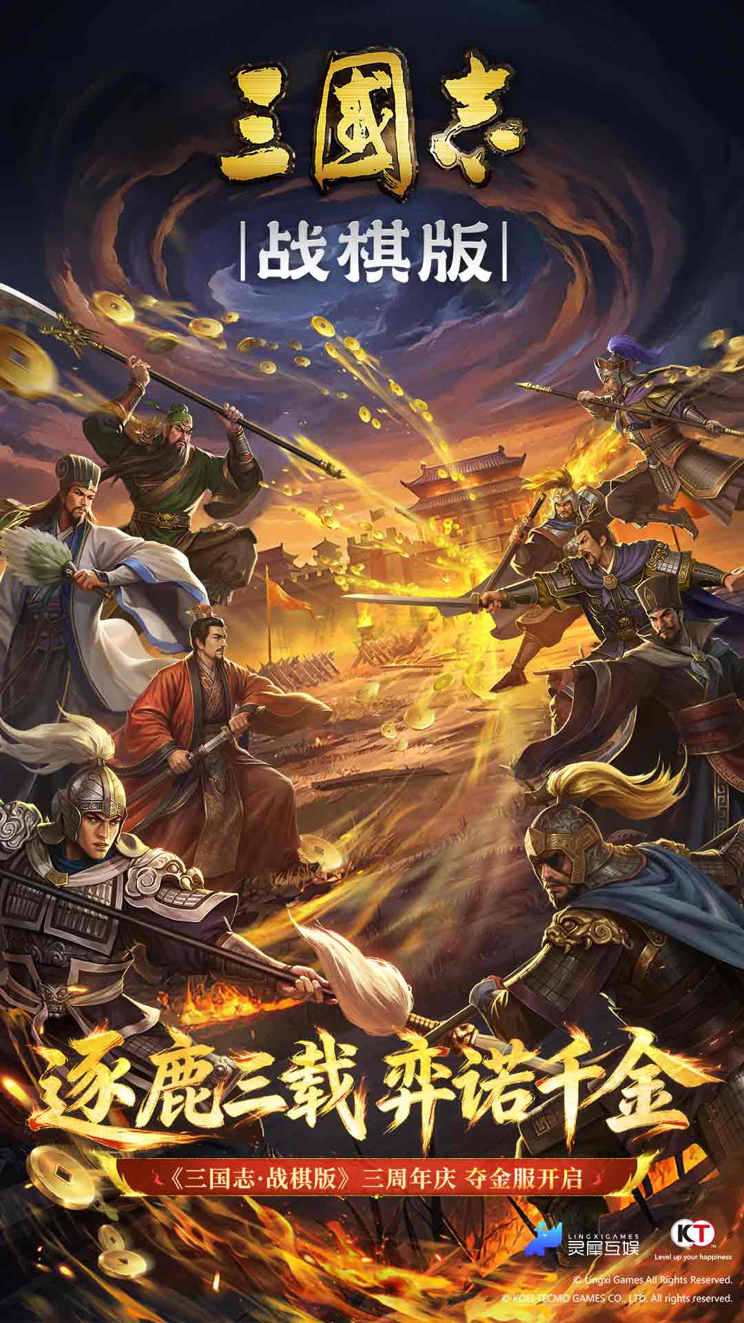为千万三国战棋迷呈现好玩、不氪、零负担的对局战斗! 光荣特库摩正版授权,创新SLG战棋手游《三国志·战棋版》,周年庆版本正式开启! 逐鹿三载,群雄再聚,棋局再开!你将亲身入局,于棋格之间排兵布阵,率领麾下名将攻城破阵;与盟友合纵连横,围城破关,在真实战场般的沙盘之上争夺天下归属。三周年夺金服和周年系列重磅福利现已上线,一场属于所有主公的盛典正在上演! 【全民夺金,进服即参与,人人有机会】凭实力,夺真金!周年夺金服正式开启!一赛季决胜负,进服即可参与夺金争夺。打地开荒、战功冲榜、同盟对抗、赛季争锋,所有战局都将影响奖励池归属。人人皆可入局,人人皆有机会!群雄逐鹿,不止争天下,更有机会瓜分真金白银! 【限时周年豪礼】 《三国志·战棋版》三周年玩家庆典开启!从4月9日起,游戏内将陆续开启周年庆典活动,活跃即领周年纪念橙装、名将自选宝箱、三国志40周年SP曹操皮肤,更有海量金铢招募信奖励,三周年庆一次领够! 【免费送60+永久橙将】 铜币抽卡时代开启!SLG平民玩家抽不起卡?配队总是缺这缺那?这次直接让你实现抽卡自由!铜币滚滚来,抽卡不花钱!60+名橙将,零门槛永久获得,赛季结束不回收,零氪也能轻松填满半图鉴!扩阵容、补核心、凑流派,主力队伍快速成型、战力提升一步到位! 【还原历史,复刻武将高光时刻】 《三国志·战棋版》将三国武将的一生,浓缩成一枚枚棋子,每个武将的技能都是他一生中的高光时刻。你可以操控一身是胆的赵云,杀入敌阵来个“七进七出”;或者指挥智勇双全的关羽,再次上演“水淹七军”的好戏。就连娄圭、戏志才等冷门武将,游戏也精心设计,细致考据,还原他们在历史上的成名技!