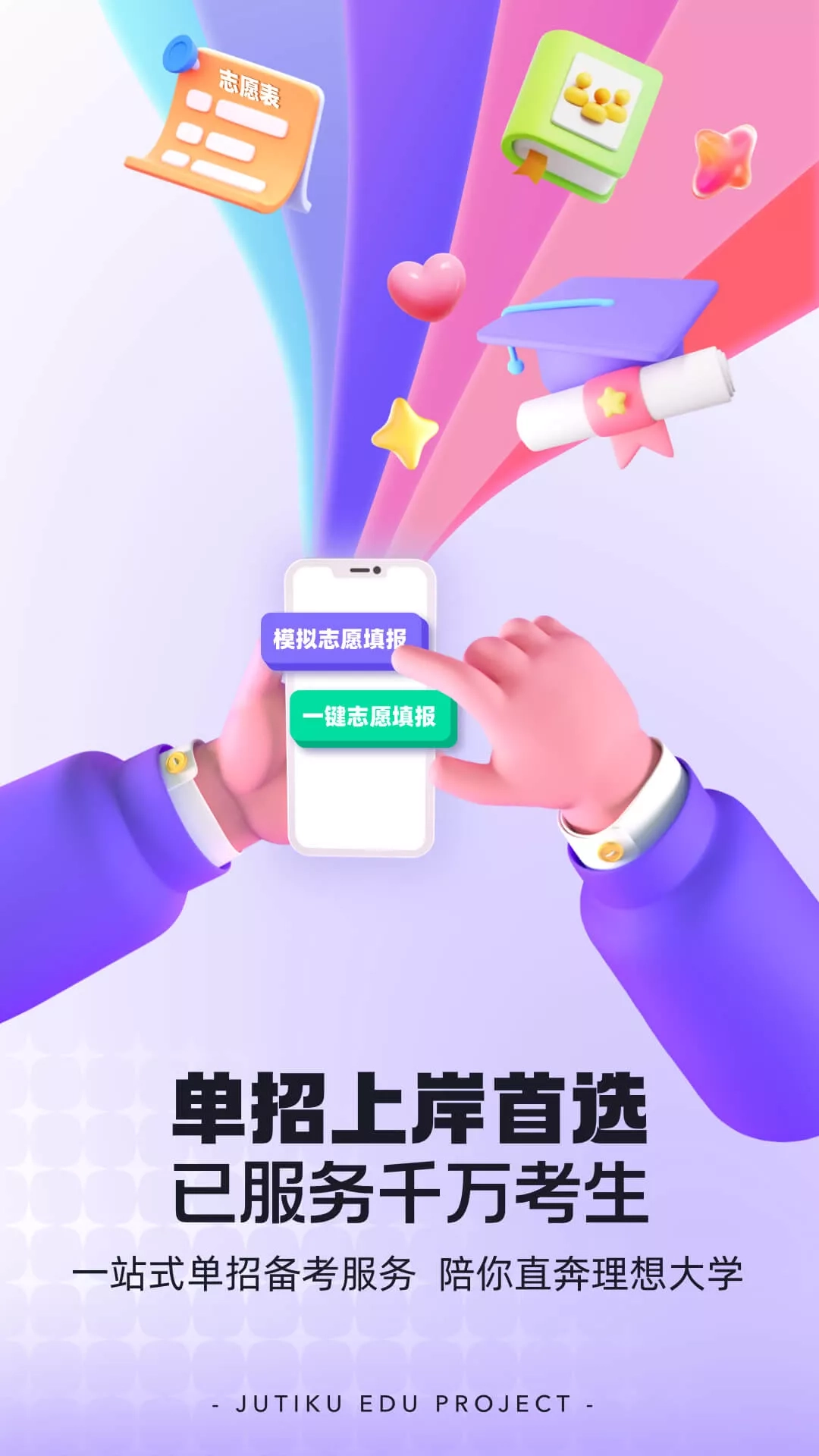 已累计服务1000万职教升学考生!超过600家普高中专等院校老师推荐! 2026年高职单招全新升级版本来袭,智能模拟志愿填报系统全新上线! 【智能模拟志愿填报系统】 完善院校招生数据信息库,结合考试成绩、历年招生计划分数线等,智能算法帮你预估录取概率,志愿填报更科学高效! PS:由于部分省份院校招生和录取数据未公开,暂不支持此功能。 【单招百科 考试日程全流程指导】 备考全程重要时间节点日程提醒,注意事项及相关政策指导,是备考过程中的贴心小助手! 【文化素质+职业技能 全科精选题库+名师课程】 ▪备考科目全覆盖,根据不同省份、不同考生类别的考试政策深度定制。 文化素质部分包含语文、数学、英语等;职业技能部分包含职业倾向性测试、职业技能测试、面试等。 ▪知识点课程精讲结合专项练习、历年真题+模拟试卷,快速提分。 【权威测评 匹配适合专业】 霍兰德专业兴趣、MBTI职业性格等权威心理测评多维度性格、能力分析,详细测评报告,帮你了解自身特质,定位适合你的专业 【覆盖全国高职院校 单独招生/提前招生/分类招生】 根据各省高职院校招生考生政策定制,深度适配各种招生类别,提供招考动态、考试日程提醒、志愿填报指导、针对性学习提升等一站式备考服务,助力圆梦理想大学! 全国各省份高职单招,安徽省高职分类考试/对口招生,广东省依学考录取,"3+证书",普通高职自主招生,江苏省高职提前招生/中职职教高考,山东省高职单独招生/高职综合评价招生,高职分类考试/分类招考/对口招生,上海市专科自主招生,云南省春季高考/职教高考,中职升学/单考单招