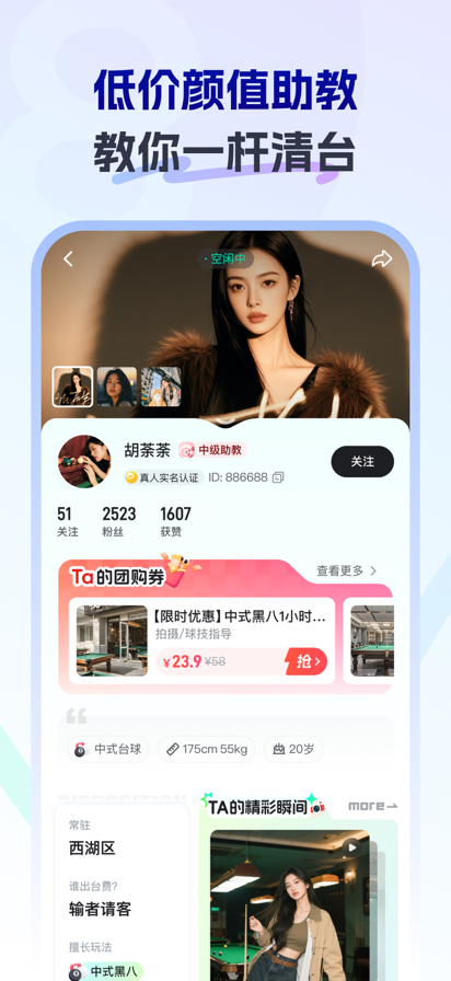 瞄运动app,你的台球娱乐好帮手,低价购券、约战、拼桌、计时记分、球杆租赁,通通搞定。丰富的技能教学和同好搭子速约,便捷的团购囤券小能手。现已覆盖同城门店超500家,附近3公里内随时随地想打就能选好地/约到人。 ※产品亮点 【附近低价团购】 ·附近5公里严选球房一键囤券,到店核销,随时可退。 ·签到即领现金,注册就送15元现金红包,支持会员优惠折扣。 【极速拼桌组局】 ·高效一键拼桌,支持玩法/性别/年龄/距离等多方位筛选。 ·球友搭子精准匹配(水平、距离、时间),线上邀约组局,线下开台。 【球友同好社区】 ·精彩击球瞬间上传分享,围观高手“名场面”。 ·附近球友动态可见,留言约战或围观学习,简单又便捷。 【球友交流社群】 ·球友杆法速览,经验水平掌握,实时发起挑战。 ·同城还有高手,切磋还是讨教,任你选择。 【品质球杆租赁】 ·严选球房绑定,随时随地享受高品质品牌球杆。 ·大小头杆免费试杆,超值会员权益,用到就是爽到。 ※产品优势 ·附近5公里严选独家合作球房,线上营销赋能,专属券价补贴,精准引流到店。 ·智能硬件加持,含智慧传感摄像头安装/共享球杆柜0成本铺设/智能球杆等权益。 ·台球垂直品类,只做球友市场,台球用户会员权益升级,台球生涯全流程记录。 【关于我们】 隐私协议:https://www.mmpp.club/h5/pages/agreement/policy 用户协议:https://www.mmpp.club/h5/pages/agreement/protocol 【联系我们】 客服专线:0571-87809300(工作日9:00-21:00) 微信客服:mmpphz666(添加时备注"瞄运动APP") 官网:https://www.mmpp.club/ © 2025 瞄瞄碰碰(杭州)数字技术有限公司 | 浙ICP备2024074170号-5A