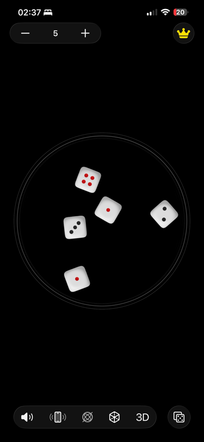 使用我们的简单掷骰子应用程序,您可以毫不费力地掷出 1 至 8 粒骰子。我们的应用程序可满足您所有的掷骰子需求,确保您每次掷骰子都能获得完美体验。无论您称它们为骰子还是骰子,我们的掷骰子应用程序都能让您快速、轻松地使用。 功能 - 添加或删除骰子(最多 8 个):自定义您要掷的骰子数量,从 1 到最多 8 个不等。 - 点击掷骰子: 只需轻点屏幕即可掷骰子,并立即查看结果。 - 启用或禁用声音: 选择打开或关闭声音效果,获得更个性化的掷骰子体验。 现在就下载并开始掷骰子吧!这是目前最好的掷骰子应用程序!