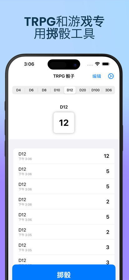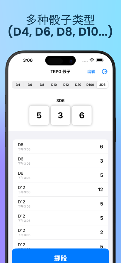 TRPG骰子是一款为桌面角色扮演游戏爱好者量身打造的掷骰应用。无论是玩龙与地下城、桌游还是其他TRPG,这款应用都能满足你的需求! 主要特色: • 多种骰子类型:D4、D6、D8、D10、D12、D20、D100以及3D6 • 界面简洁直观 • 流畅的掷骰动画 • 历史记录功能 • 深色模式支持 完美适用于: • TRPG游戏团 • 桌游聚会 • 快速概率计算 • 任何需要虚拟骰子的场合 应用采用流畅的动画效果,操作界面简单易用,让掷骰变得轻松自如。内置的历史记录功能可以追踪之前的结果,轻点一下就能在不同类型的骰子之间自由切换。 立即下载TRPG骰子,让你的桌游体验更上一层楼! Privacy Policy: https://sites.google.com/view/trpgdiceroller-privacy Terms of Use: https://www.apple.com/legal/internet-services/itunes/dev/stdeula/