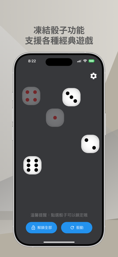 「玩骰子」是一款多功能骰子App,最多支援12顆骰子,並擁有鎖定功能,能保留特定骰子的結果,非常適合應用各種不同的經典骰子遊戲,例如話呸、吹牛、拔牙、紅黑單雙等,無論是多人遊戲還是單人遊戲,都能滿足。 特色功能包括: 1.支援最多12顆骰子的擲出,讓你享受豐富的骰子遊戲體驗。 2.鎖定骰子功能,讓你保留特定骰子的結果,精準掌握每次擲骰的狀況。 3.易於使用的介面,隨時隨地開啟並開始擲骰,讓遊戲更加方便。 4.適用於多種骰子遊戲,無論是多人遊戲還是單人遊戲,都能滿足需求。 5.擁有聲音與振動效果,每次擲骰時都有真實的聲音回饋,並可選擇震動模式,讓你更身臨其境