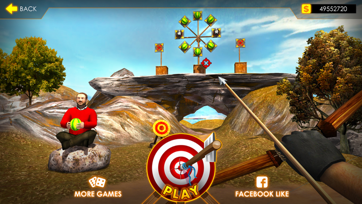 顶级射箭术比赛在美国 和德国有 3 200 000多个玩家!在一场游戏中同时具有魔宫传奇和苹果射击,这是有史以来最大的一次更新 ! 令人上瘾的射击游戏,它是结合了出色的图像和基于物理的游戏! 对游戏的追求。加入战争对抗邪恶的敌人!保卫王国!揭开故事,获得新的盔甲,箭头和有魔力的戒指!与敌人进行战斗并赢得最后的战斗 ! 苹果射击游戏--使用一张弓和箭射掉人脑袋上的苹果。如果有失误的话,你将会杀掉你的对手 。每一个阶段,难度将逐步增加 。