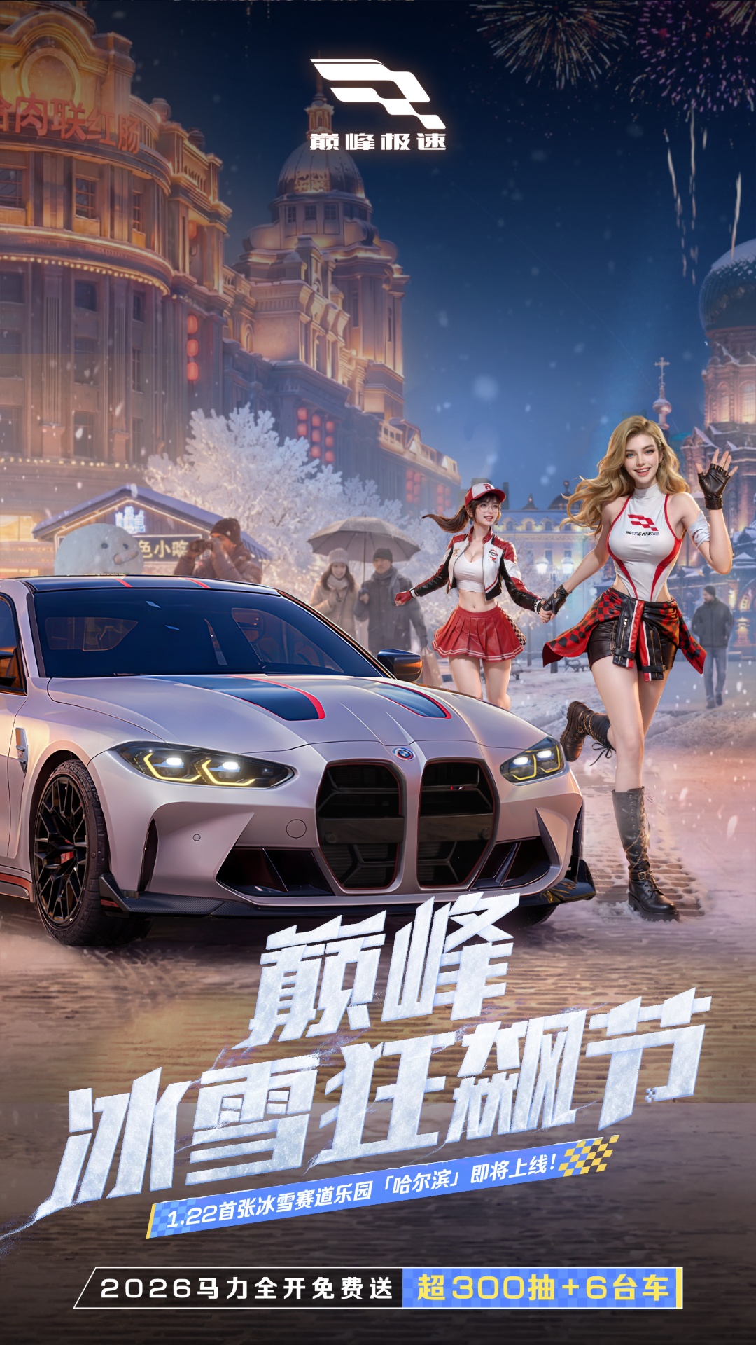 2026马力全开,新赛季免费送超300抽+6台车!《巅峰极速》26S1新赛季开启,雪地狂飙、冰雪搜打撤、双王降临、六骏送福、共创冰雕城...巅子们也有自己的冰雪节!全新赛道「哈尔滨」上线,开启你的冰雪乐园!全新玩法「雪境夺宝」推出,巅峰搜打撤、百万撤离送任一车展车辆!全新限定传奇「宝马 M4 CSL」首发登场、全新大东北特色限定时装、语音包、动作等限时送出!更有全新珍藏传奇「驭影双王」即将降临、全新马年主题爽玩新服即将开启,更有更多惊喜福利活动等你解锁!<br><br>引擎轰响,我的主场!<br>《巅峰极速》是Codemasters®深度合作,网易游戏自研的巅峰品质极速赛车游戏,取得了全球40多个主流车厂的正版授权,得到了包括法拉利、兰博基尼、保时捷在内的超100款一线的车辆技术数据和资料。每一台车,包括其改装零件、套件,均在原厂严谨监修下完成。玩家将可以自由收集、改装100多款正版授权豪车;可以驰骋在白云山、芝加哥、巴塞罗那、西西里岛等全球街区与专业赛道上,体验沉浸光影与真实轰鸣声带来的沉浸感;还能够参与多车排位赛、追逐赛、对抗公开赛、俱乐部耐力赛等丰富竞速玩法,与其他玩家进行实时的竞速对决,成就竞速巅峰!