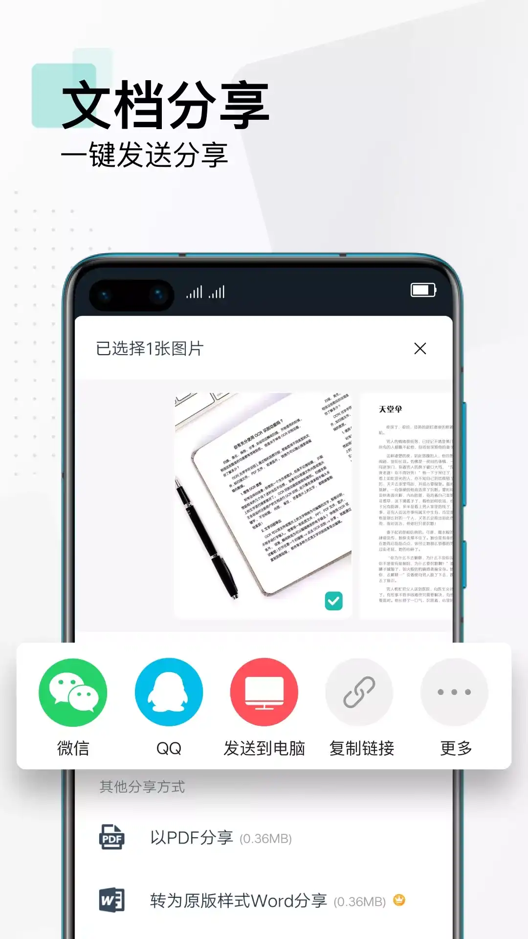 手机描仪,文档管理工具。拍照清晰可切边裁剪图像,裁剪你需要的文件内容,生成PDF。邮件发送、连接打印机、传真、微信共享电脑脑功能齐全、云存储,多设备多途径数据区!实用型的办公无纸化节能工具! 全球几千万用户使用,2011年服务至今 扫描王图像处理技术功能让你的文件清更清晰,陈旧文件也一样可以增强 代替扫描仪,随时随地分享,让你的办公效率显著提高 功能亮点 1:手机上的扫描仪 手机拍照文档,自动切边去除杂乱背景,生成JPGG图片或PDF。 2:图片OCR,可以识别文字 OCR文字识别,拍纸质文件,可以识别图片的文字内容,搜索更简单 3:云存储,让你更安全的管理文件,查阅更方便 手机、平板、电脑,多设备随时,随地查阅文档。 标签归类,手写批注,文档加密,方便有序,高效安全。 4:无线打印,微信,QQ,邮件多功能分享 扫描王的无纸化理念,是为了配合你们的需果,更适合哪些人群 1:商务人士:出差不用携带文件,更可以扫描合同、文件,可以通过微信,邮件等即时通讯工具、共享,随时随地工作 2:学生,教师,教授,音乐,作家,设计师等:随手扫描笔记、课堂讲仪,乐谱,作家手稿、PPT 3:手绘:没有扫描仪,也能把手绘画稿美美地秀给小伙伴们了~