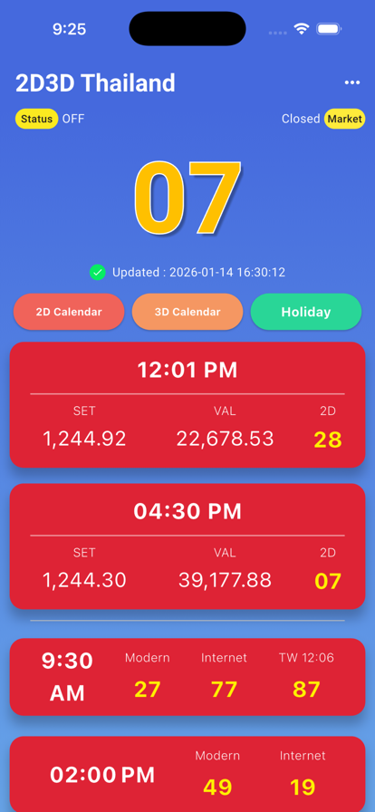 Our app sources all its data from the official Stock Exchange of Thailand (SET), allowing you to check the latest results yourself. While checking the official website is an option, using our app provides a quicker and more convenient way to access both recent results and historical data. Our App updates real-time data during Thailand working days. For Myanmar, Date updates between 9:30AM to 12:01PM and 2:00PM to 4:30PM For Thailand, Date updates between 10:00 AM to 12:31 PM and 2:30 PM to 5:00 PM We hope you continue to enjoy our app for a long time to come!