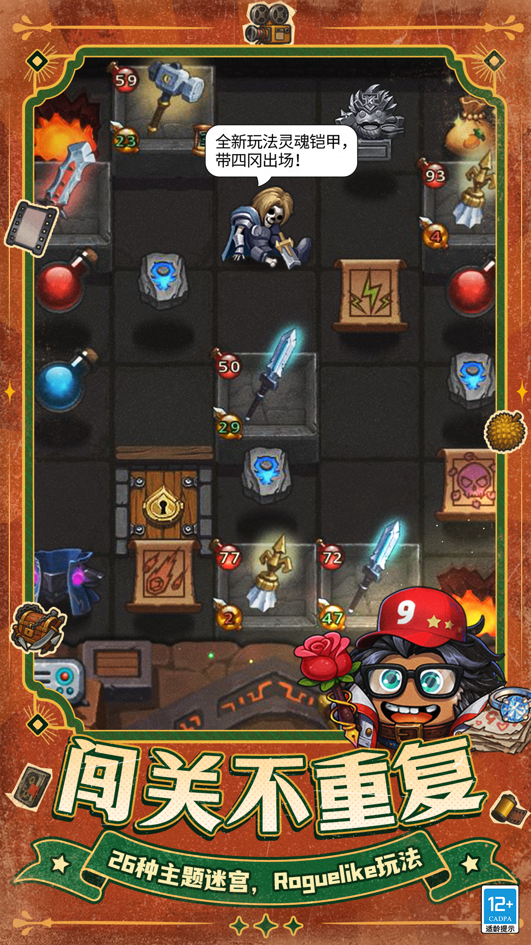 九年口碑品牌,1900万玩家认证,好玩到停不下来!<br><br>《不思议迷宫》是一款以收集和探索为核心乐趣的冒险游戏。<br>1、这是一个可以尽情收集的游戏。<br>游戏里有300多个角色等你收集,每一只都有独特价值和专属技能。且收集方式多样,不靠脸不靠抽,体验更佳!<br>2、这是一个可以尽情探索的世界。<br>游戏里有26座的地图迷宫,十几个星域任你探索,探险的路上还会遇到数不清的惊喜彩蛋,为你带来丰富的趣味与福利。<br>3、这是一个前期需努力,后期可以躺着养老的游戏。<br>前期需要费心一些,毕竟有这里可探索的东西太多了!与此同时游戏有大量的放置玩法,炼金坊为你不停歇生成金币和物资,一键扫荡一键收菜,坐收福利!<br>4、这是一个经过全国1900万用户口碑认证过的优质国产手游。