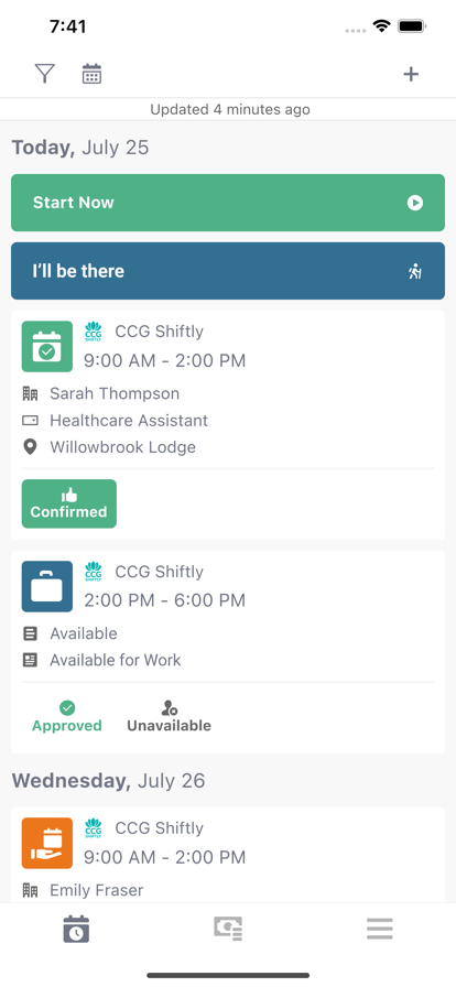 CCG Shiftly is designed to make managing shifts simple and efficient for all clinicians at Catalyst Care Group. It helps you keep track of your work schedule, clock in and out accurately, and handle leave requests - all from your phone. This app offers a secure, easy-to-use platform that streamlines employee management by bringing all essential functions into one place. Whether it’s clocking in and out with precise location verification, accessing your schedule, or submitting leave requests, this app keeps your work life organised and balanced. Key Features: - See your shifts anytime with all the details you need. - Clock in and out with location checks for accuracy. - Request annual leave or sick days easily. - Get updates and messages from your team. - Safe, secure login to protect your info. Why Use It? Managing shifts, hours, and leave can be complex and time-consuming. This app provides an easy, reliable way to keep your schedule organised and your work hours accurate. It gives you control and transparency, so you can focus on delivering great care and maintain a work-life balance more easily. Benefits: Saves time by reducing manual scheduling and paperwork. Improves accuracy with verified clock-in/out. Makes leave requests quick and clear. Keeps you up to date with real-time notifications. Supports work-life balance by helping you manage your time. Who It’s For: Clinicians and care staff at Catalyst Care Group who want 24/7 access to their working hours, shift schedules, and real-time schedule overview. How It Works Sign In Securely: Access your personalised account with your credentials to view your shift timetable and manage your schedule. Track Your Shifts: View real-time updates for your scheduled shifts including times, locations, and details. Clock In and Out with Location Verification: Record your working hours accurately using GPS-based clock-ins that confirm your presence on site. Request Leave with Ease: Submit annual and sick leave requests effortlessly. Managers receive notifications and can approve or provide feedback through the app. Stay Updated: Get alerts for shift changes, approvals, or important announcements to keep your workflow uninterrupted.